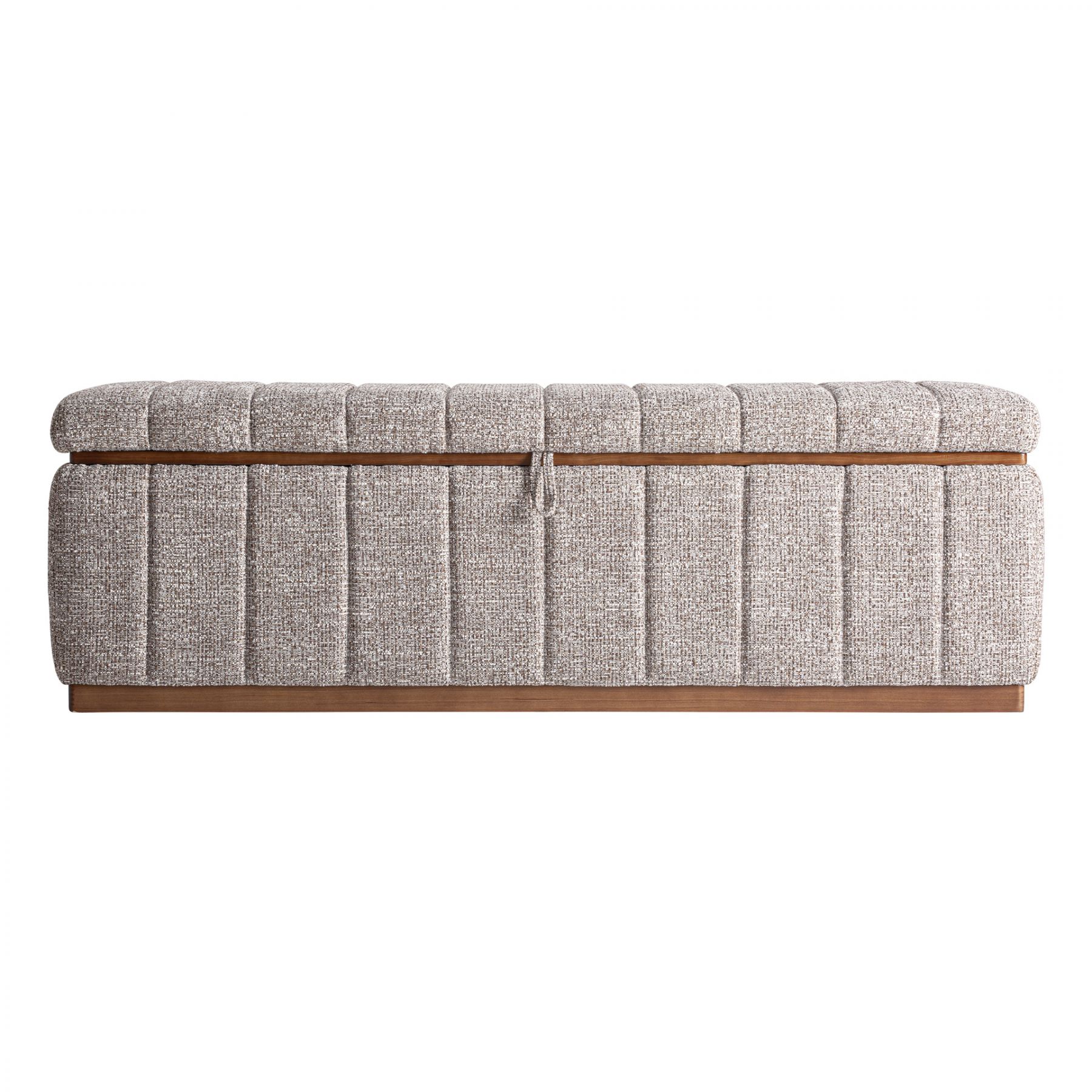 Изножье кровати Ontoria в современном стиле изготовлено из серого полиэстера с пестрой отделкой в сочетании с коричневой дубовой древесиной и пенопластом. Ширина: 143 см, Глубина: 47 см, Высота: 46 см