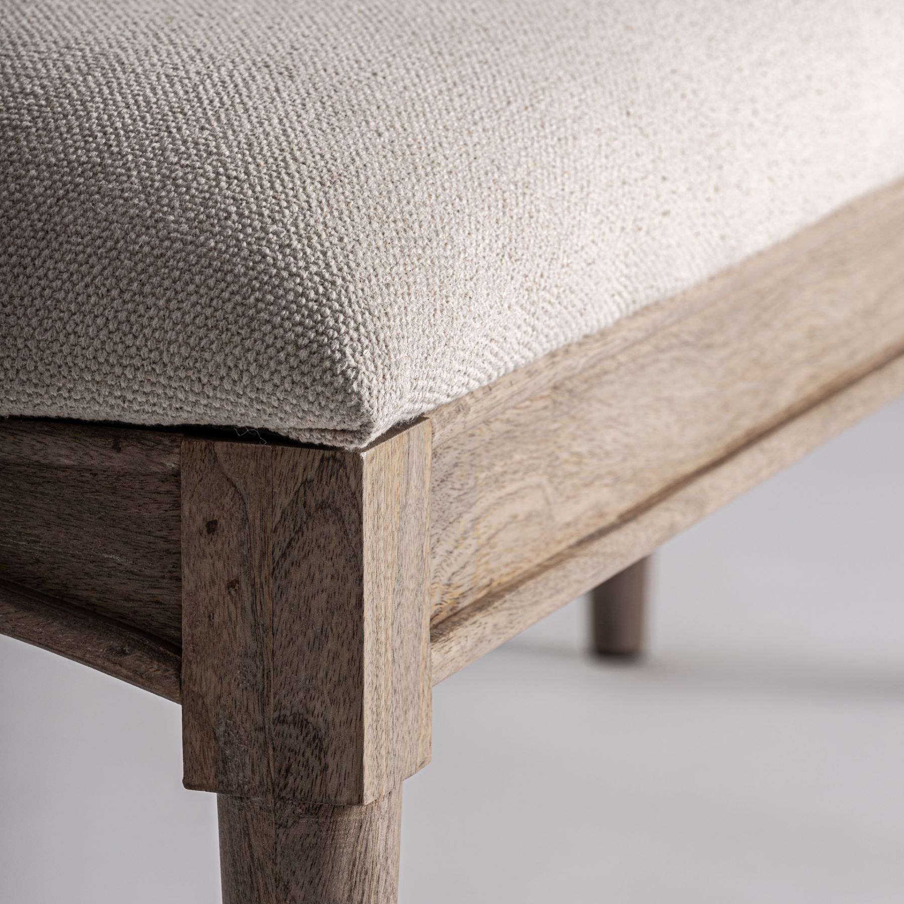 Скамейка изготовлена из светло-коричневого мангового дерева в сочетании с бежевым джутом и пенопластом. Ширина: 130 см, Глубина: 40 см, Высота: 45 см