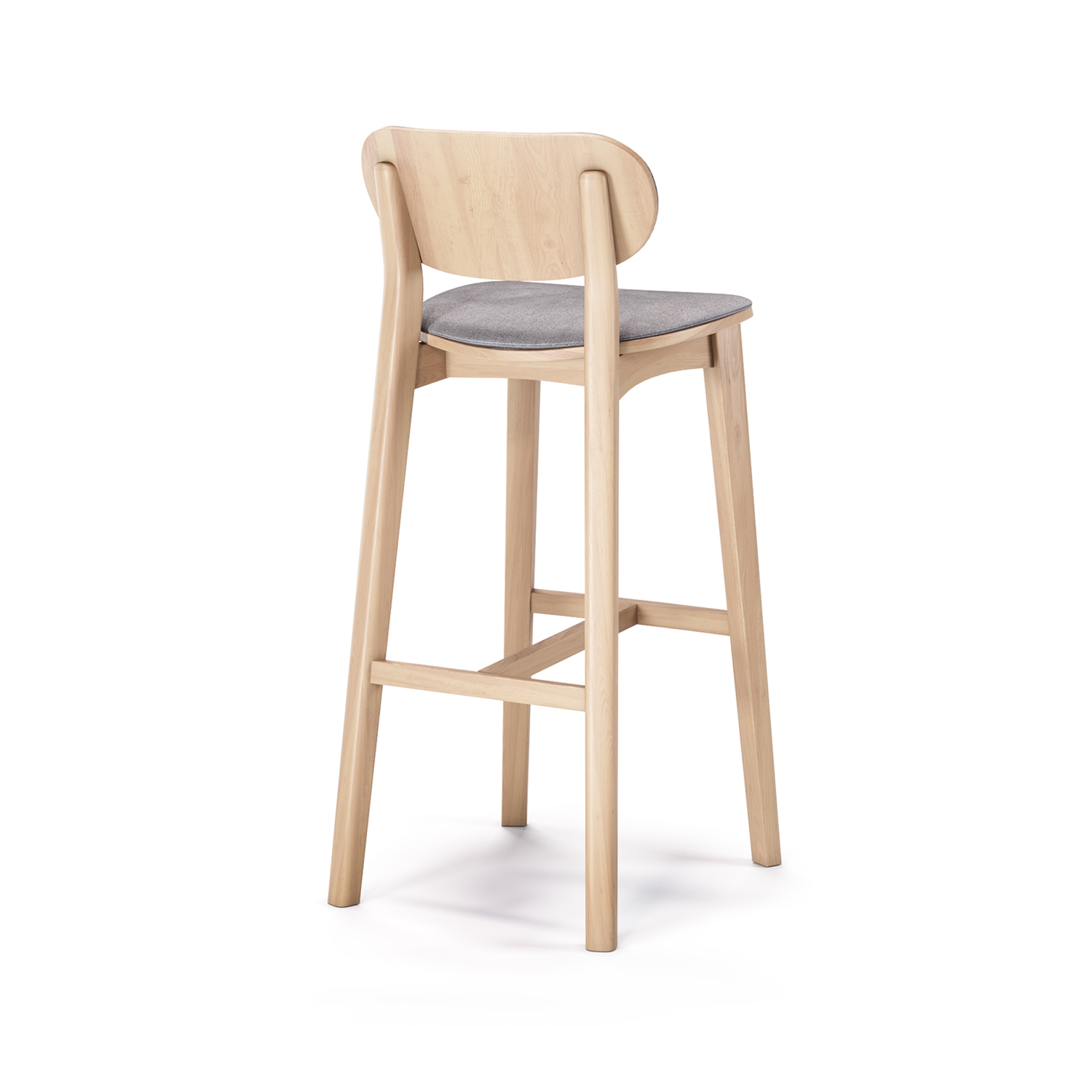 Современный барный стул в скандинавском стиле. Каркас стул изготовлен из массива бука, а сиденье и спинка из высококачественного шпона. Легкая, прочная и стильная модель. Материал обивки и цвет покраски подбираются в соответствии с пожеланиями заказчика.