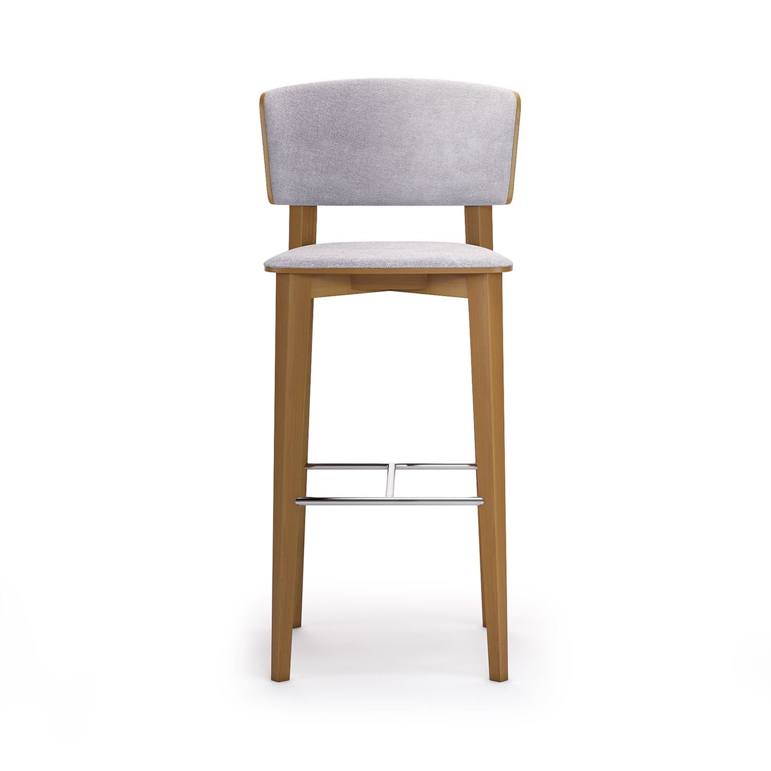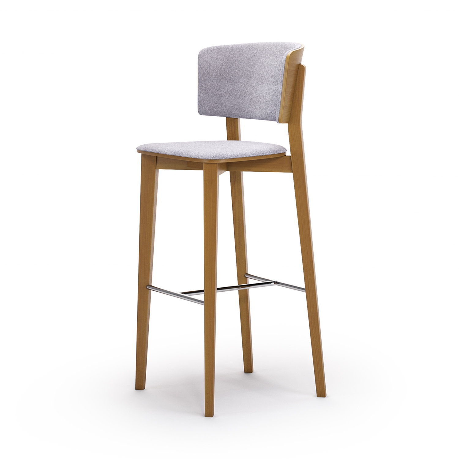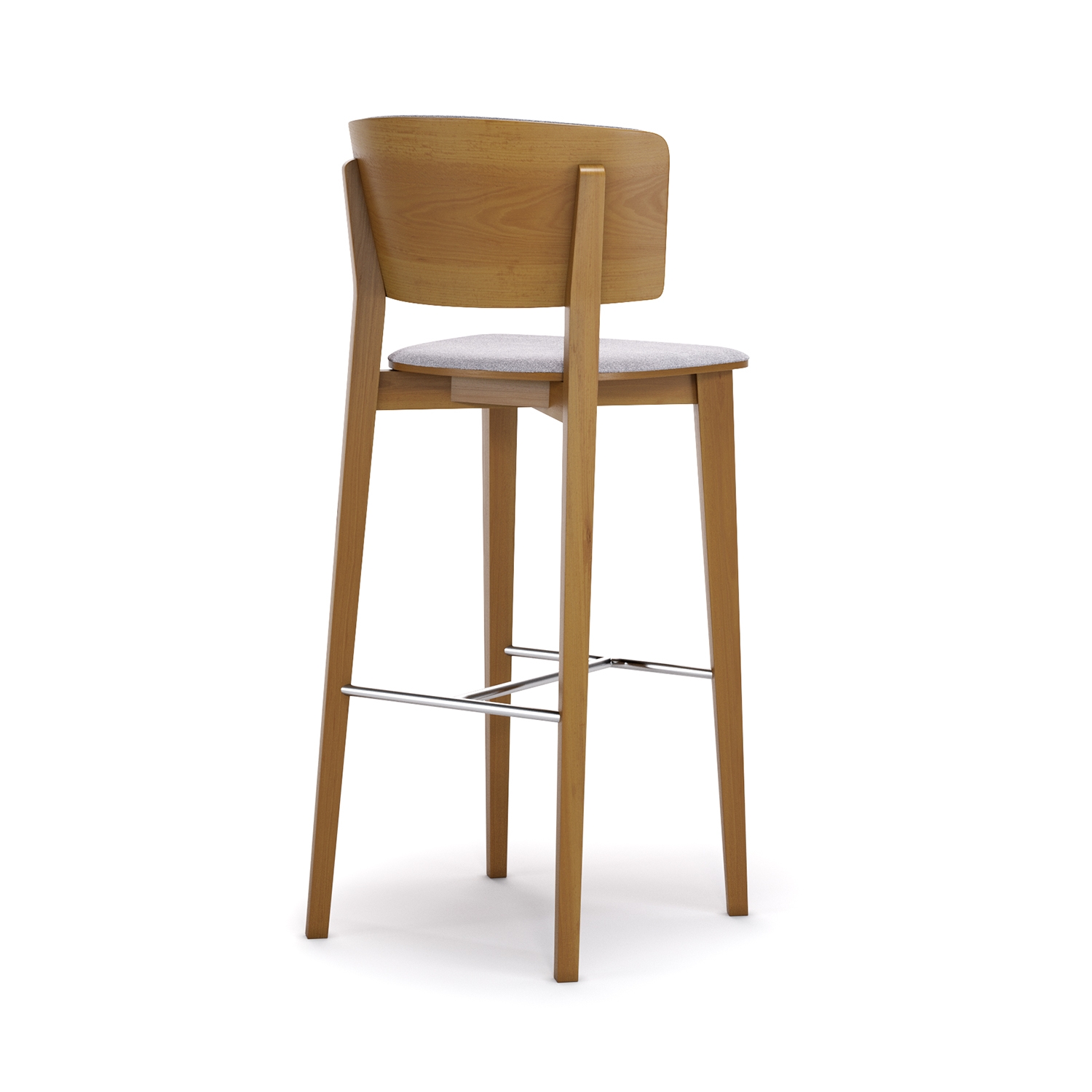 Барный стул в скандинавском стиле. Каркас стула изготовлен из массива бука, а сиденье и спинка из шпонированной фанеры в мягкой обивке. Легкая, прочная и стильная модель.