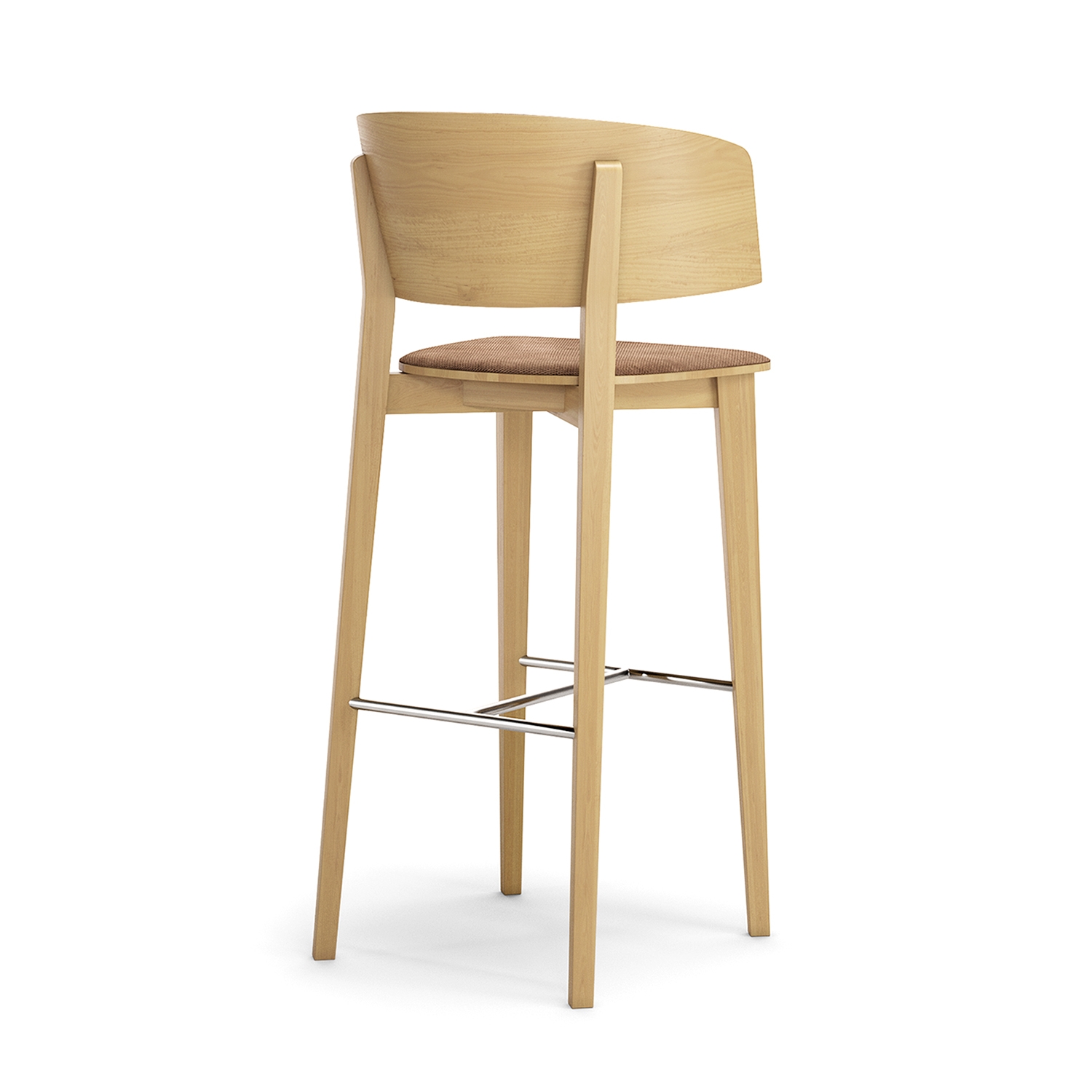 Барный стул в скандинавском стиле. Каркас стула изготовлен из массива бука, а сиденье и спинка из шпонированной фанеры в мягкой обивке. Легкая, прочная и стильная модель.