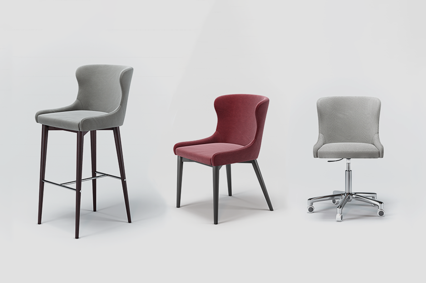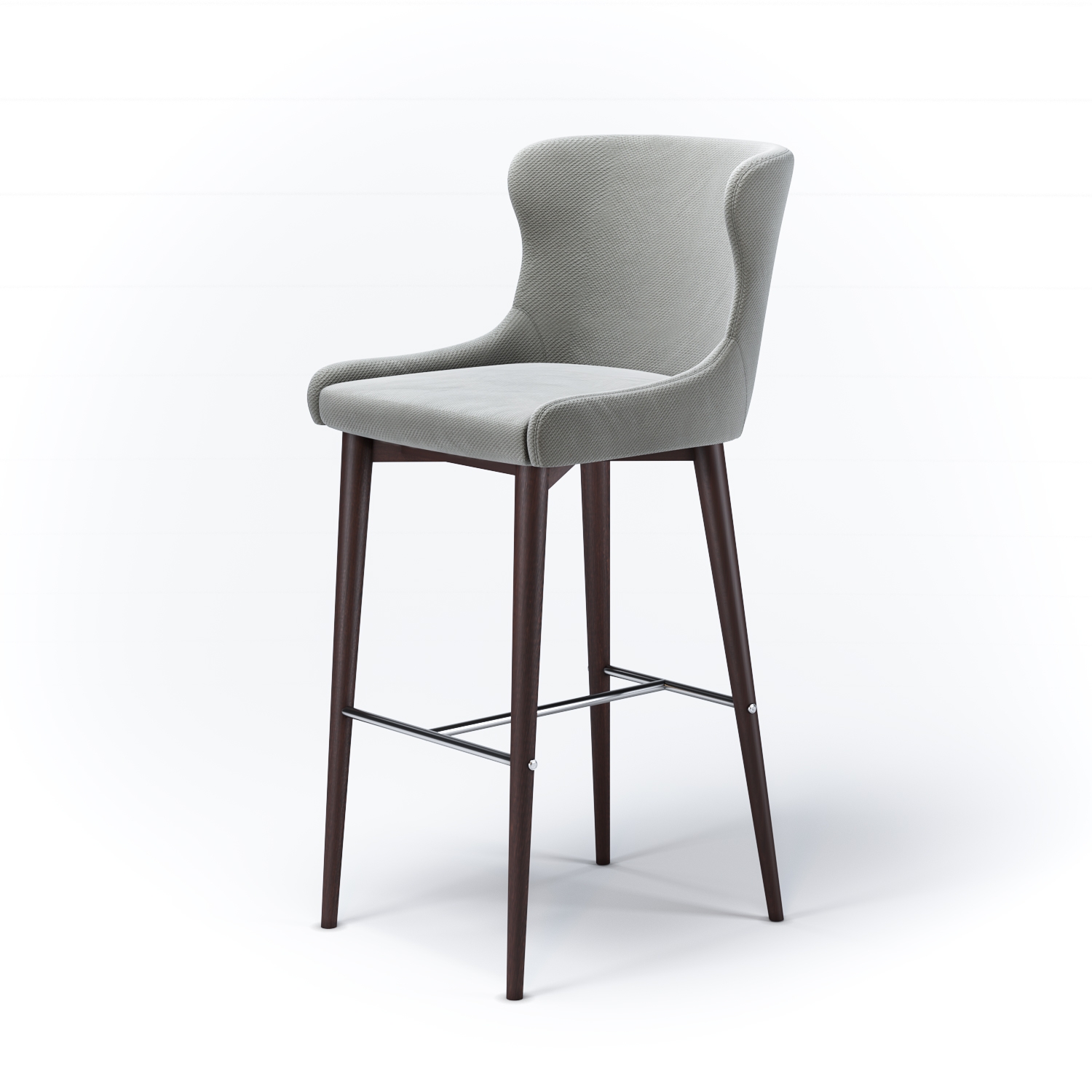 Современный дизайнерский стул. Ножки стула изготовлены из массива бука. Сиденье и спинка представляют собой металлический каркас в обивке. Мягкость и комфорт обеспечиваются за счет использования специального мебельного поролона. Доступен в обивке без стежки. Материал обивки и цвет покраски деревянных деталей подбирается в соответствии с пожеланиями заказчика.