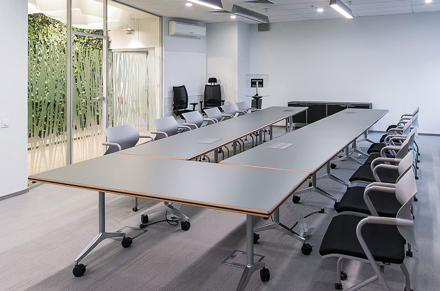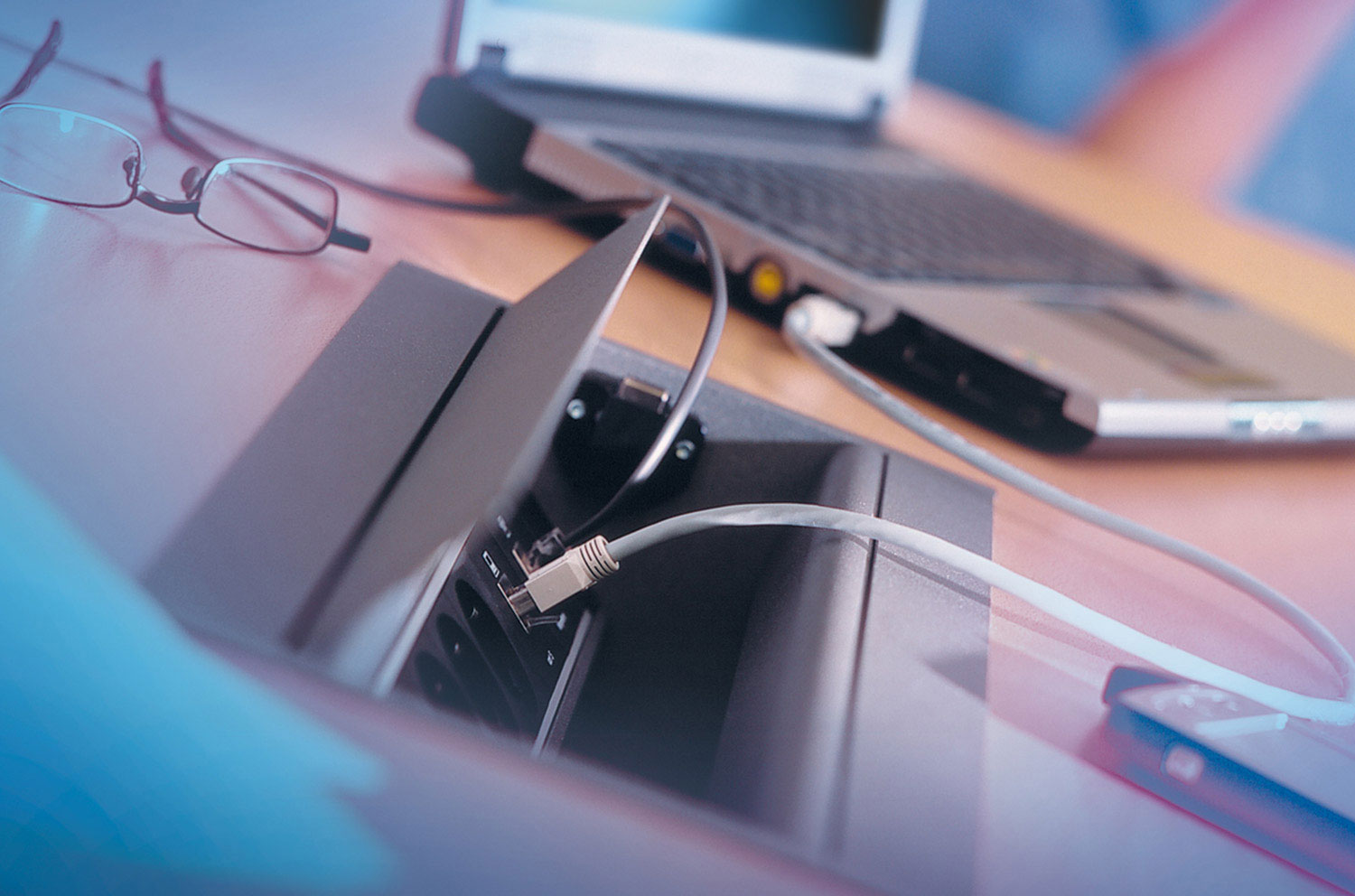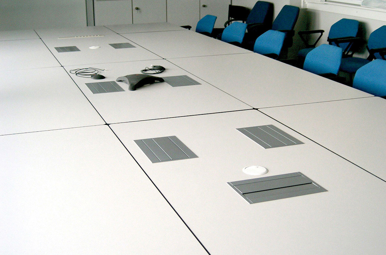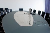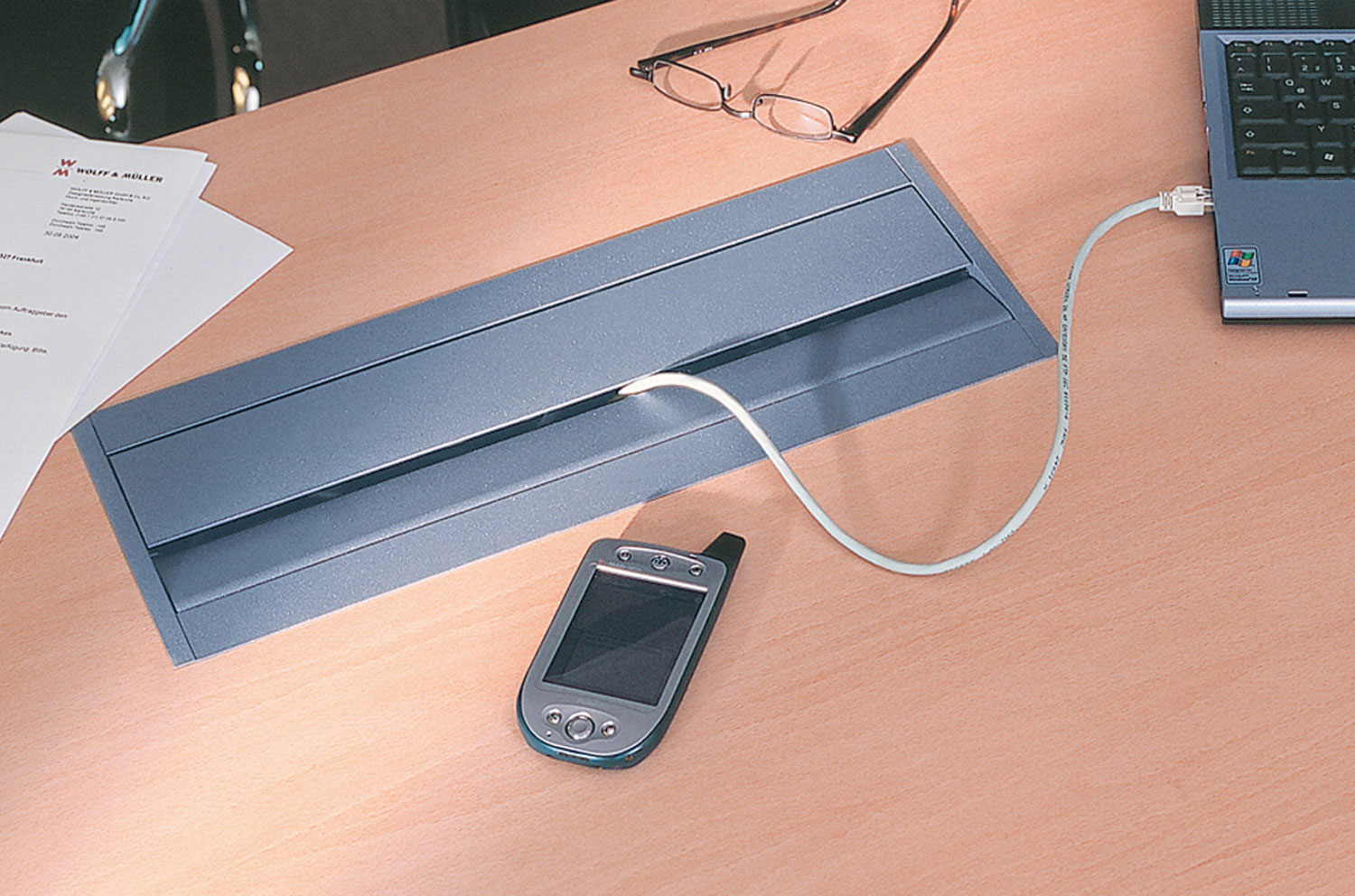 Для доступа к розеточному блоку достаточно просто легкого нажатия на створку рамки. После того, как вы подключили свой ноутбук, проектор, микрофон или другое устройство, снова нажмите на створку рамки Conference, чтобы ее прикрыть: противоположная крышка адаптируется под размер кабеля и будет выглядеть также элегантно, как и раньше.