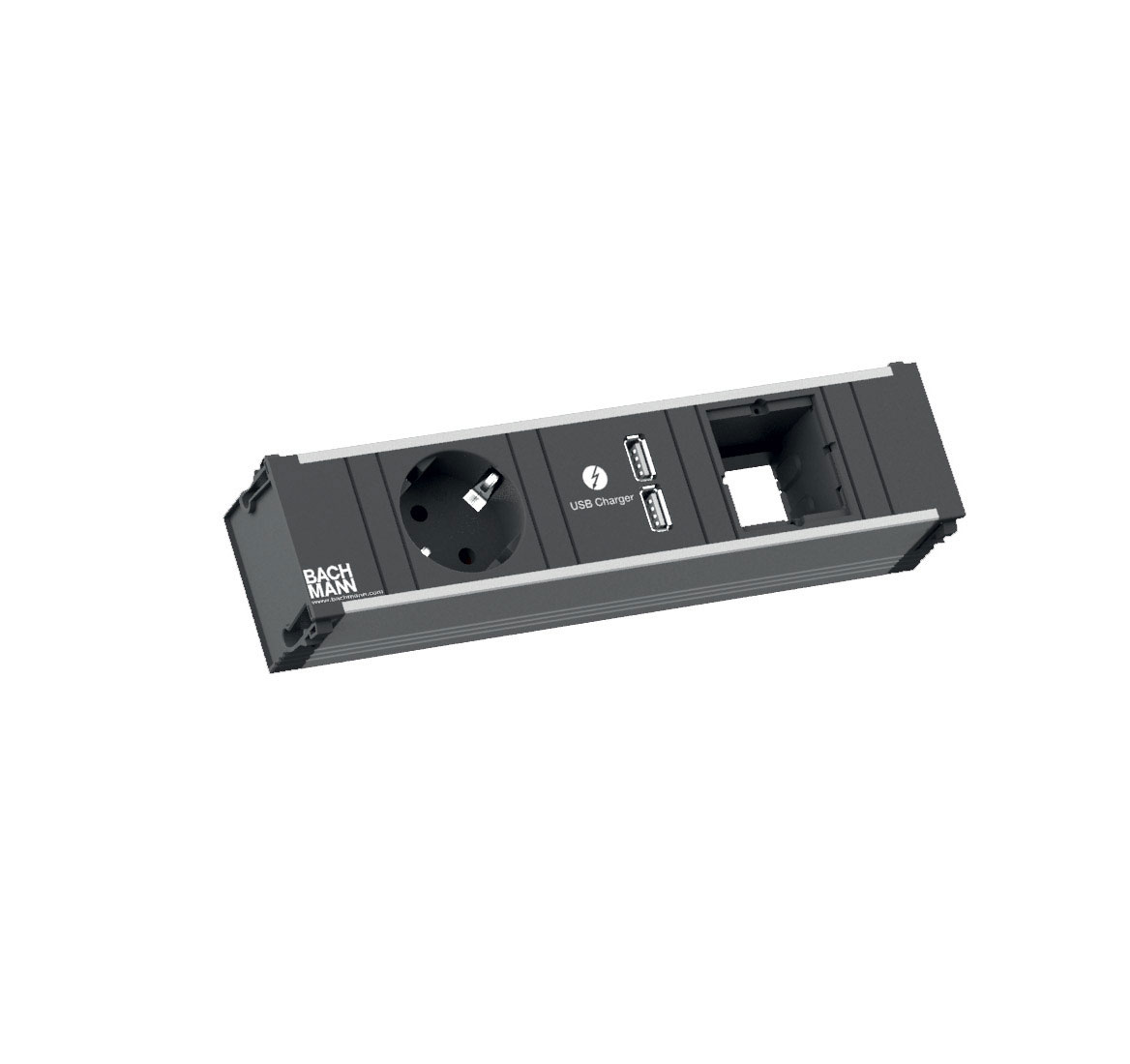 Розетблок 1+USBch+1п CONIsmall ЧЕРНЫЙ/АЛЮМ