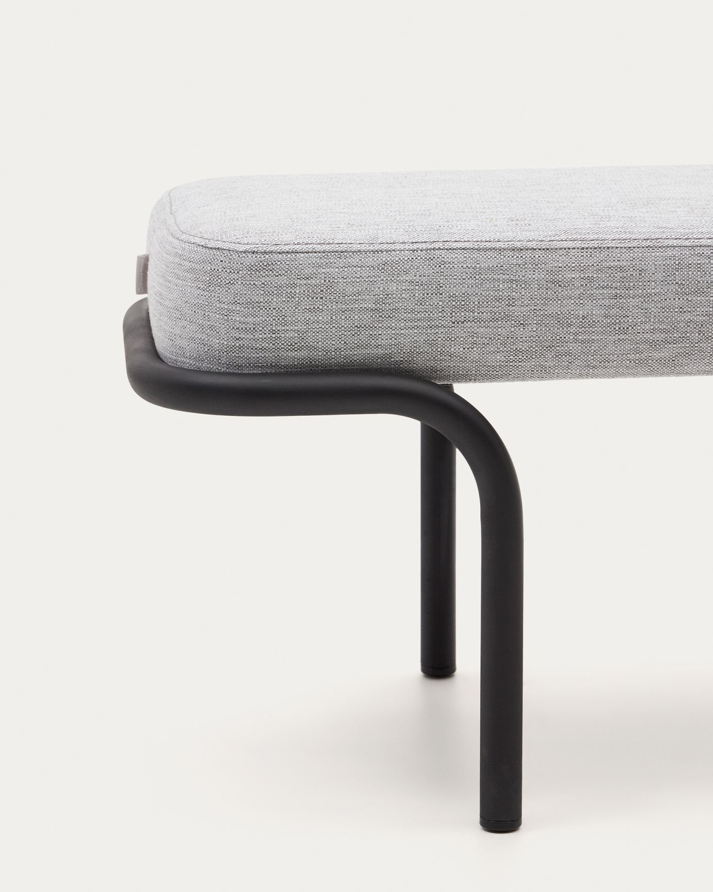 Скамья Compo от фабрики La Forma (ex Julia Grup) – адаптивный дизайн из серой ткани и черного металла. Скамья Compo – это дизайн, созданный командой Kave Home. И это безопасная и универсальная мебель для любого места в вашем доме. Его металлическая конструкция и подушка, обитые структурированной тканью, придадут современный вид любой комнате. А простая геометрия формы легко подстроится под вашу мебель. Скамья имеет сборную конструкцию, которая состоит из сиденья с тканевой обивкой и двух металлических ножек. Ножки окрашены в черный цвет, дополнены наконечниками для защиты напольного покрытия от повреждений. Диаметр трубки – 3 см. Обивка серого цвета, из 100% полиэстера, структурированная. Сверху ткань покрыта влагоудерживающей пропиткой, благодаря которой чистка от пятен становится значительно проще. Высокая износостойкость текстиля выдерживает интенсивную эксплуатацию, благодаря чему скамья подойдет для общественных мест с высокой проходимостью. Вместимость – 2 человека. Максимальная весовая нагрузка – 300 кг. Размеры: ширина – 130 см, высота – 45 см, глубина – 44 см. Вес – 12,8 кг. В коллекции Compo также представлены диваны, банкетка, приставной поднос.