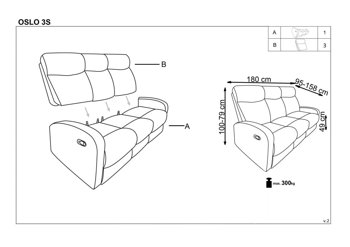 : ткань / Вес, кг: 76 / Высота (см): 100-79 / Гарантия, мес.: 12 / Глубина (см): 95-158 / Количество коробок: 1 / Материал каркаса: металл / Материал сидения: ткань / Необходимость сборки: да / Размер упаковки 1: 1,81/0,77/0,67 / Страна производитель: Китай / Цвет: серый / Ширина (см): 180