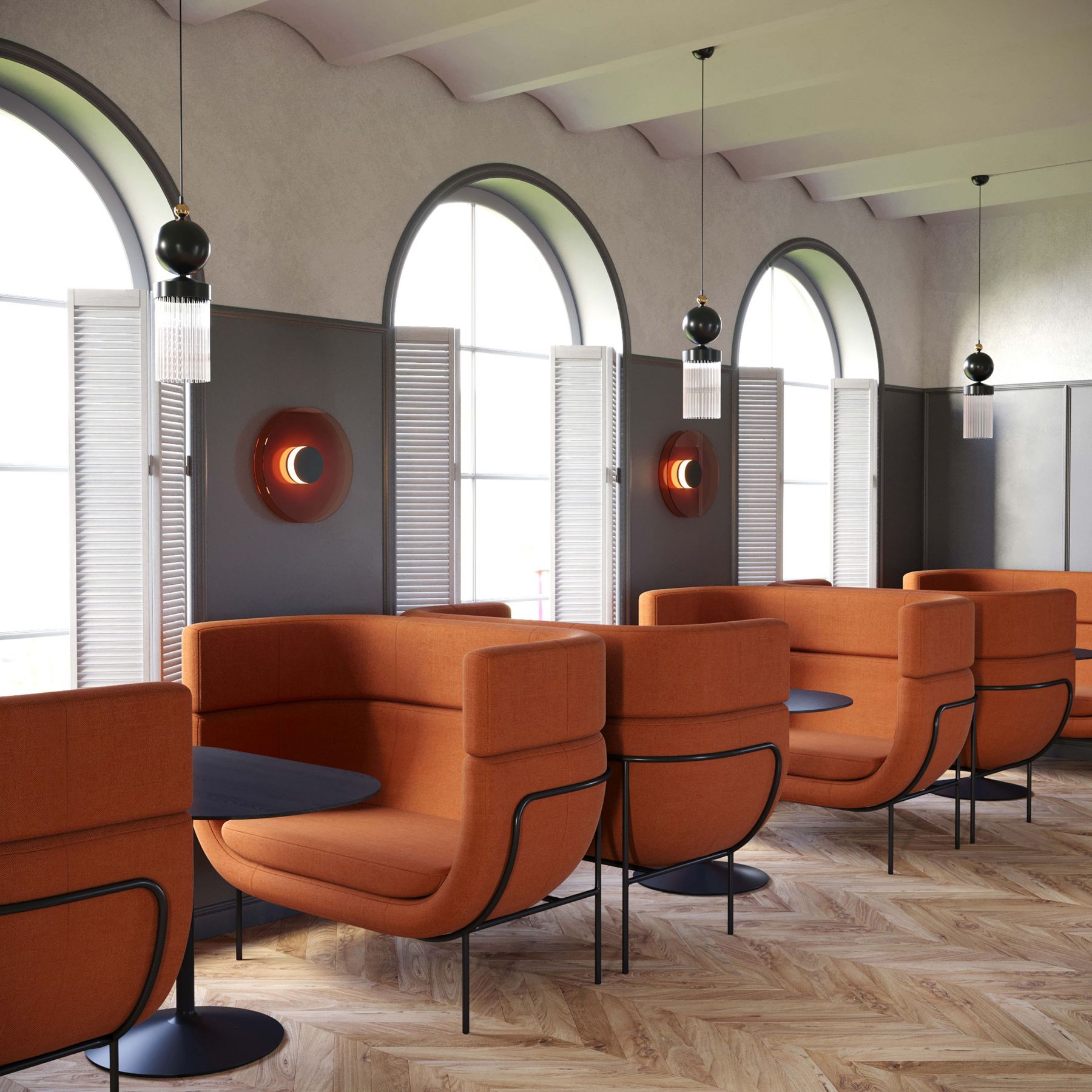Название Nid образовано от французского слова «гнездышко» — диван, создающий дружелюбную уютную атмосферу, отделяющий человека от суеты, помогающий сосредоточиться на разговоре или работе. Закрытая округлая формы защищают вас от внешнего мира и в то же время способствуют общению внутри. NID отлично подходят для использования в ресторанах, холлах и офисах, они формируют конфиденциальные и социально дистанцированные зоны для коммуникации. С помощью NID вы можете зонировать помещения с большой площадью и сформировать отдельные комфортные пространства внутри. Диваны доступны с двумя видами спинок, низкой и высокой, а также в двух размерах, на 2 или 3 персоны. Дизайн: Milodamalo По желанию заказчика доступна покраска в любой цвет по палитре RAL classic.