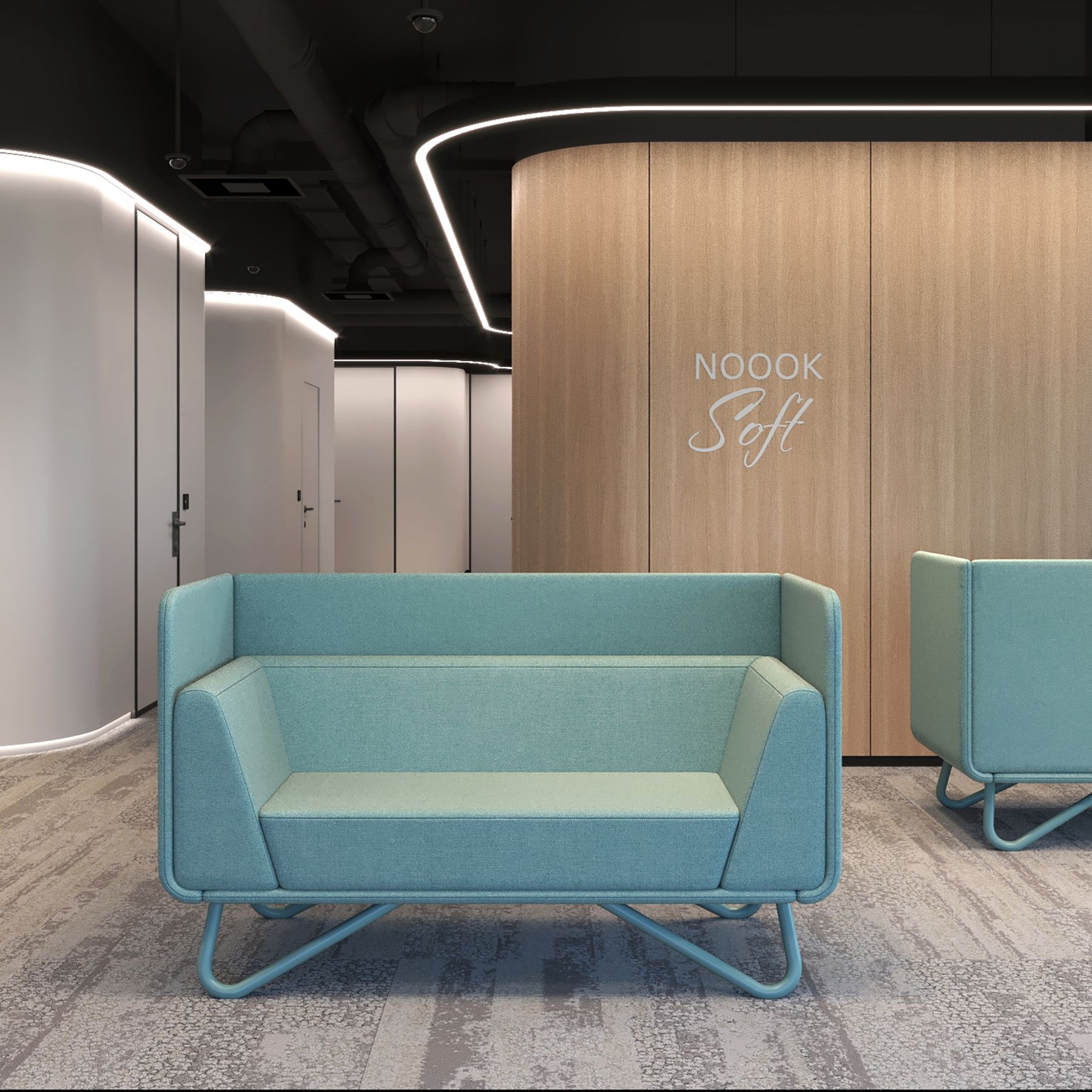 Название коллекции происходит от слова «nook» (англ.) — «укромный уголок». При работе над коллекцией диванов NOOOK дизайнеры отталкивались от желания сформировать уютное пространство для работы, отдыха, общения. Ориентируясь на офисные общественные зоны, специалисты из студии MILODAMALO создали предмет для неформальных рабочих зон и мест для переговоров и коммуникации. По желанию заказчика доступна покраска в любой цвет по палитре RAL classic.