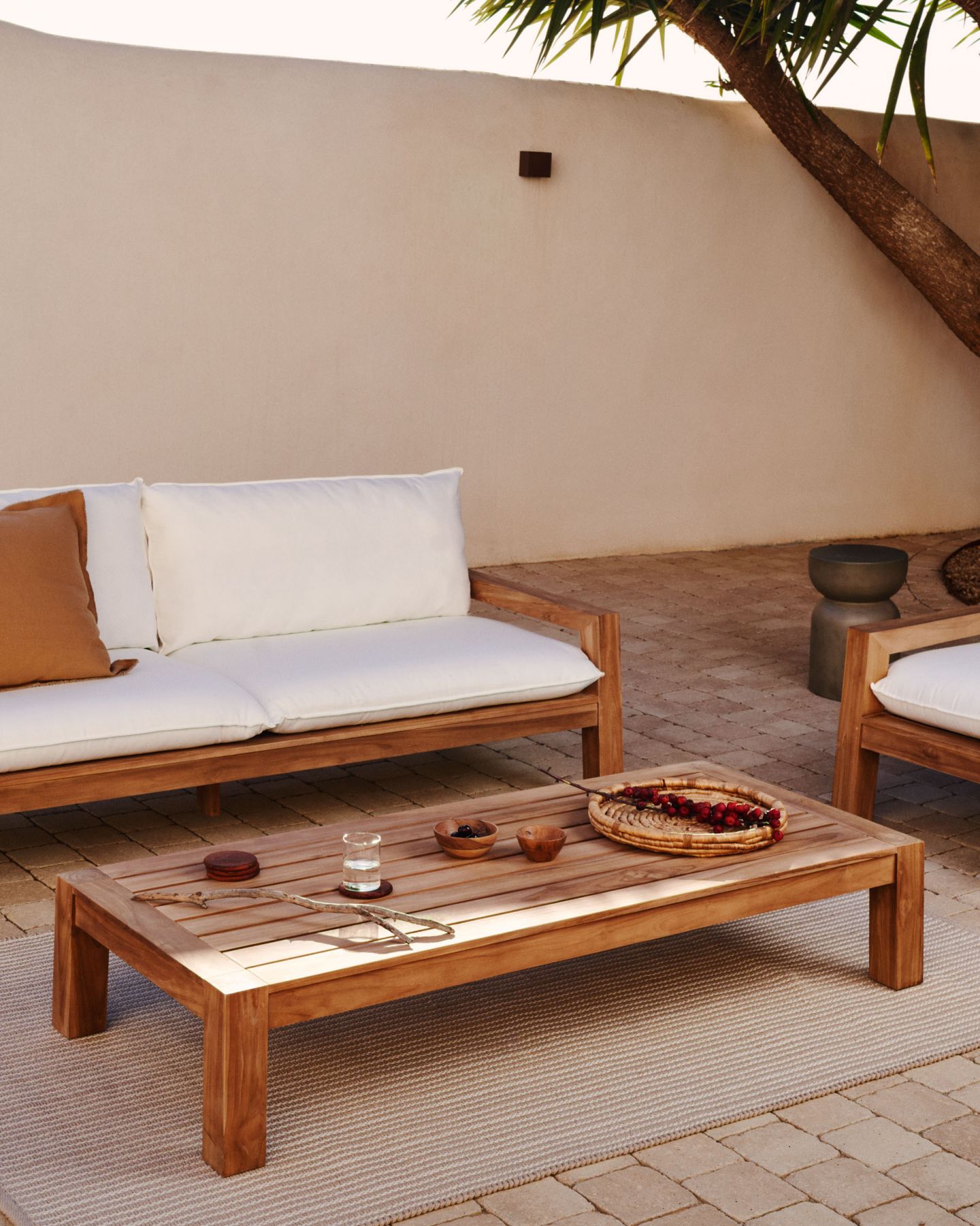 Журнальный столик из массива тикового дерева. Тик хорошо переносит влажность, сырость и сопутствующие микроорганизмы. Он очень устойчив и долговечен на открытом воздухе. Подходит для использования в интерьерах и крытых открытых пространствах.