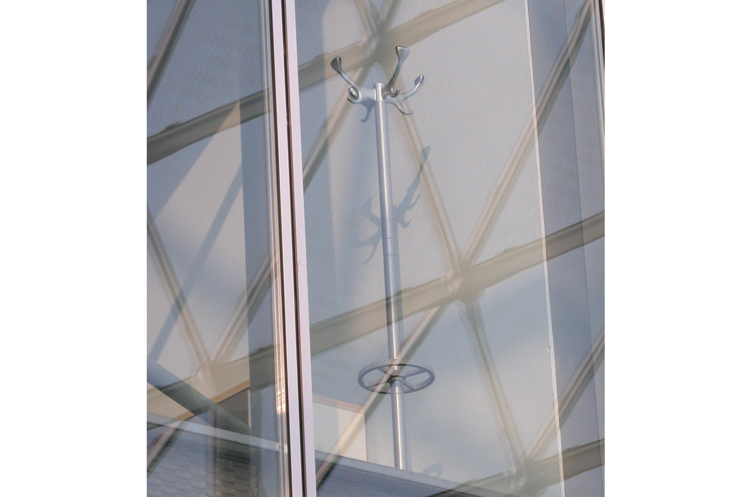 Крючки из поликарбоната: 4 больших, 4 маленьких, а также специальные отверстия, на которые можно повесить вешалки с одеждой. Кольцо-держатель и поддон для зонтов — съемные.