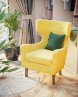 Arno – массивное кресло на каркасе из массива бука. Высокая спинка c угловатыми ушами и пиковкой плавно перетекает в подлокотники. Необычная Форма кресла отлично сочетаются с деревянными ножками. Цвет покраски деревянных деталей и материал обивки подбирается в соответствии с пожеланиями заказчика