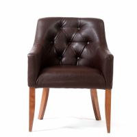 Массивное кресло в английском стиле на каркасе из ценных пород дерева. Обивка с каретной стяжкой на спинке прекрасно дополняет благородный силуэт. Кресло хорошо впишется как в современные, так и в классические интерьеры. Материал обивки и цвет покраски кресла подбираются по желанию заказчика.