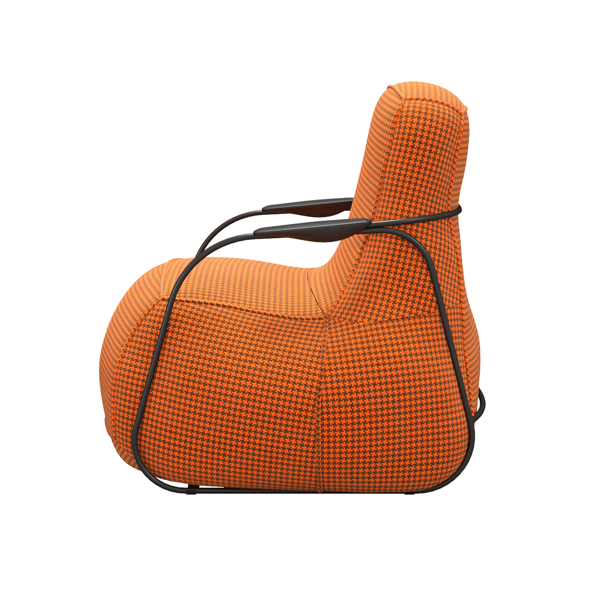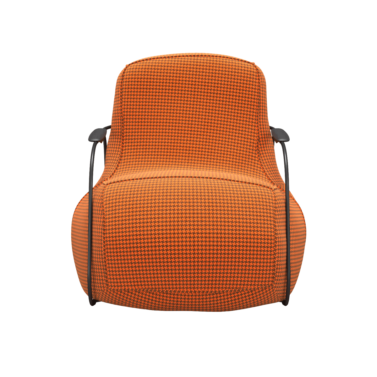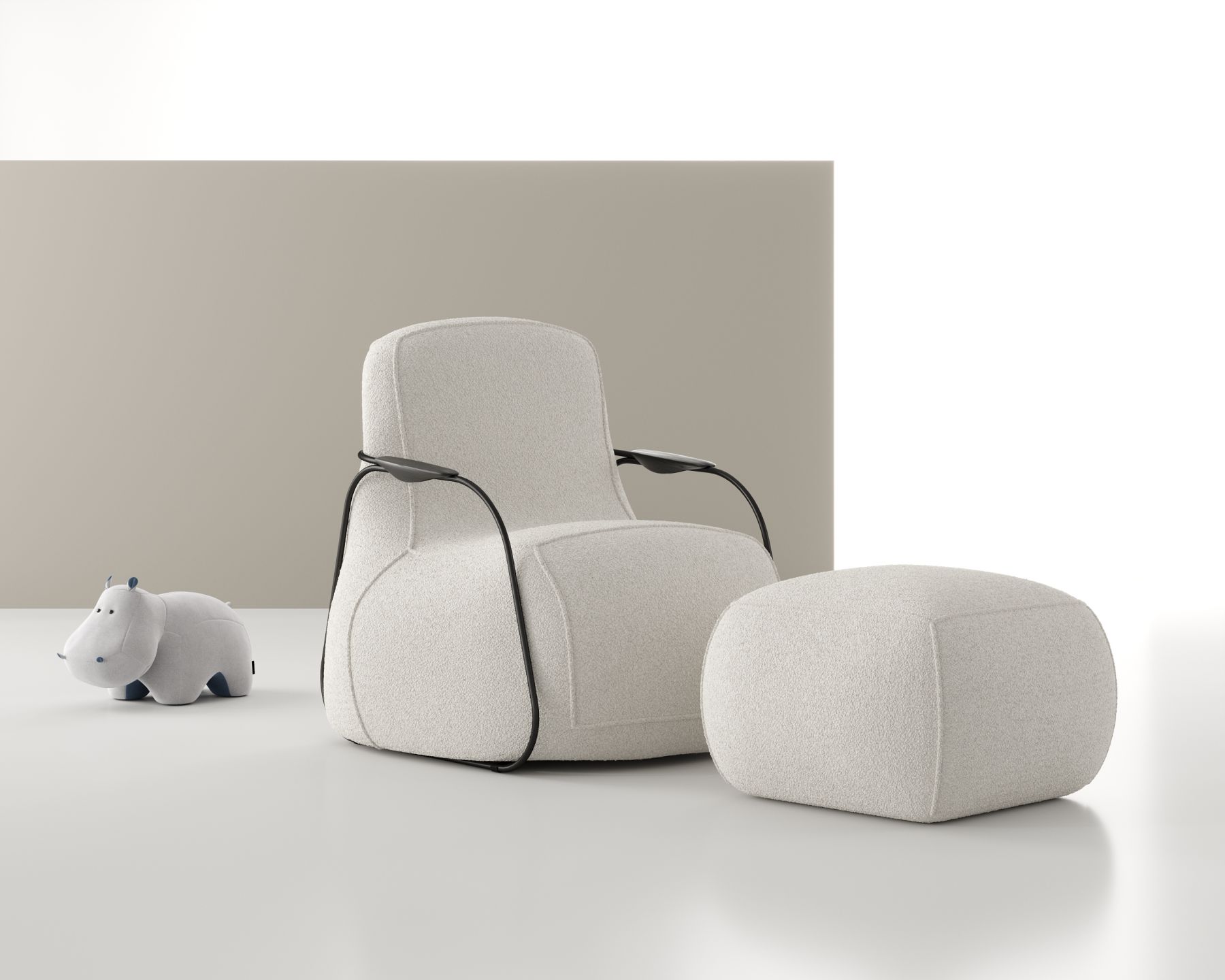 Дизайн кресла исследует нестандартные геометрические формы и выразительные объемы. Название "Nappa" означает "большой нос" на тосканском диалекте, что прекрасно отражает его округлую и уютную форму. Кресло Nappa оснащено эластичным сиденьем и спинкой, создающими цельный, плавный силуэт, приглашающий присесть и расслабиться. Компактные подлокотники обрамляют боковые стороны, а изогнутый стальной каркас подчеркивает контуры стула, акцентируя внимание на изящных складках и углублениях в обивке.