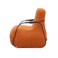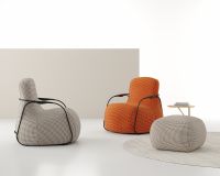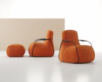 Дизайн кресла исследует нестандартные геометрические формы и выразительные объемы. Название "Nappa" означает "большой нос" на тосканском диалекте, что прекрасно отражает его округлую и уютную форму. Кресло Nappa оснащено эластичным сиденьем и спинкой, создающими цельный, плавный силуэт, приглашающий присесть и расслабиться. Компактные подлокотники обрамляют боковые стороны, а изогнутый стальной каркас подчеркивает контуры стула, акцентируя внимание на изящных складках и углублениях в обивке.
