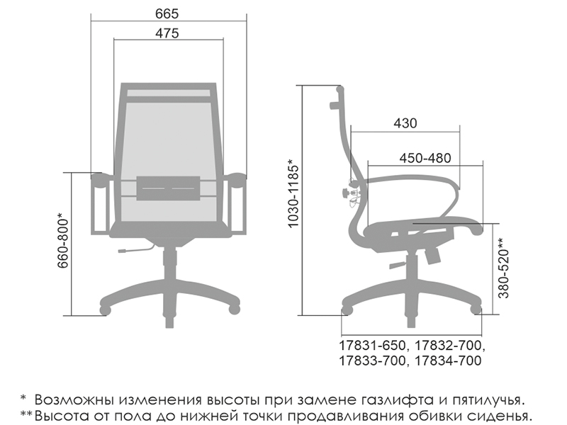 **Высота сиденья в верхнем и нижнем положении может быть изменена, в зависимости от модели применяемого газ-лифта.