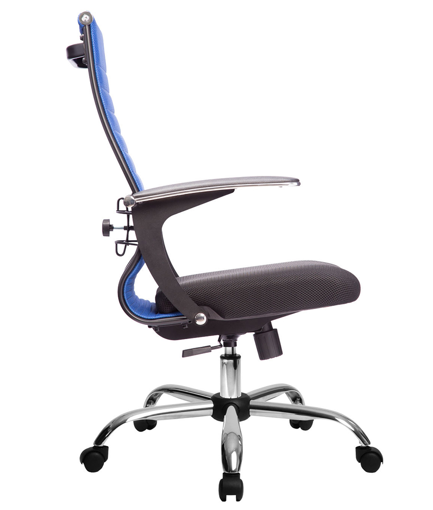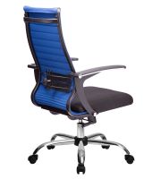 - синяя спинка с черными накладками подлокотника и черным сиденьем;