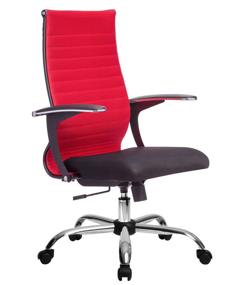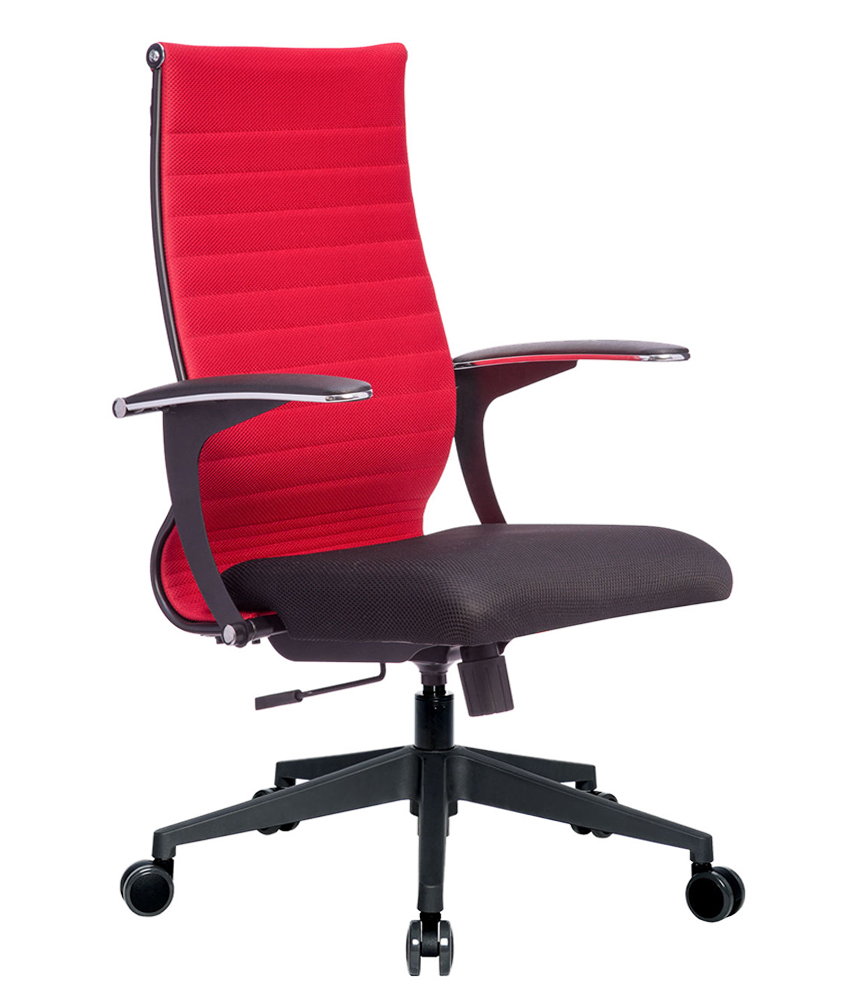 - красная спинка с черными накладками подлокотника и черным сиденьем.