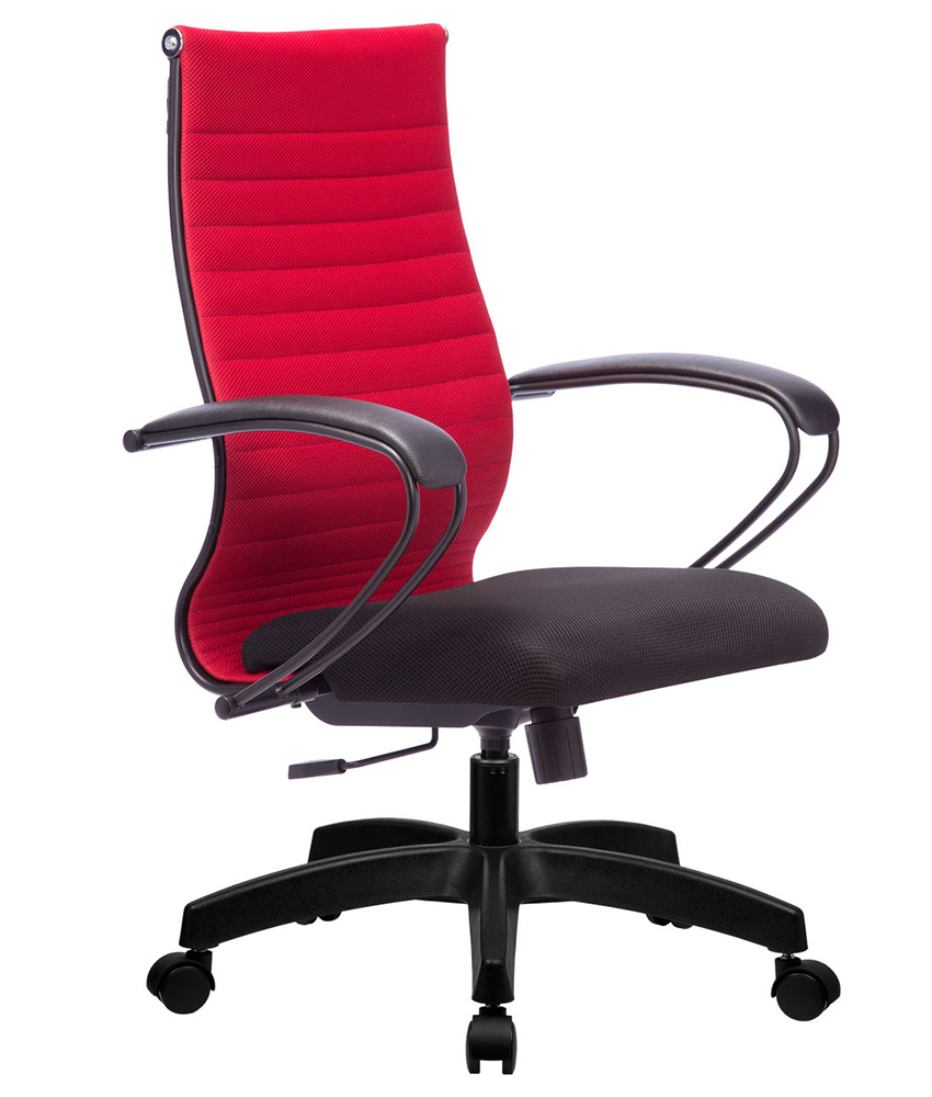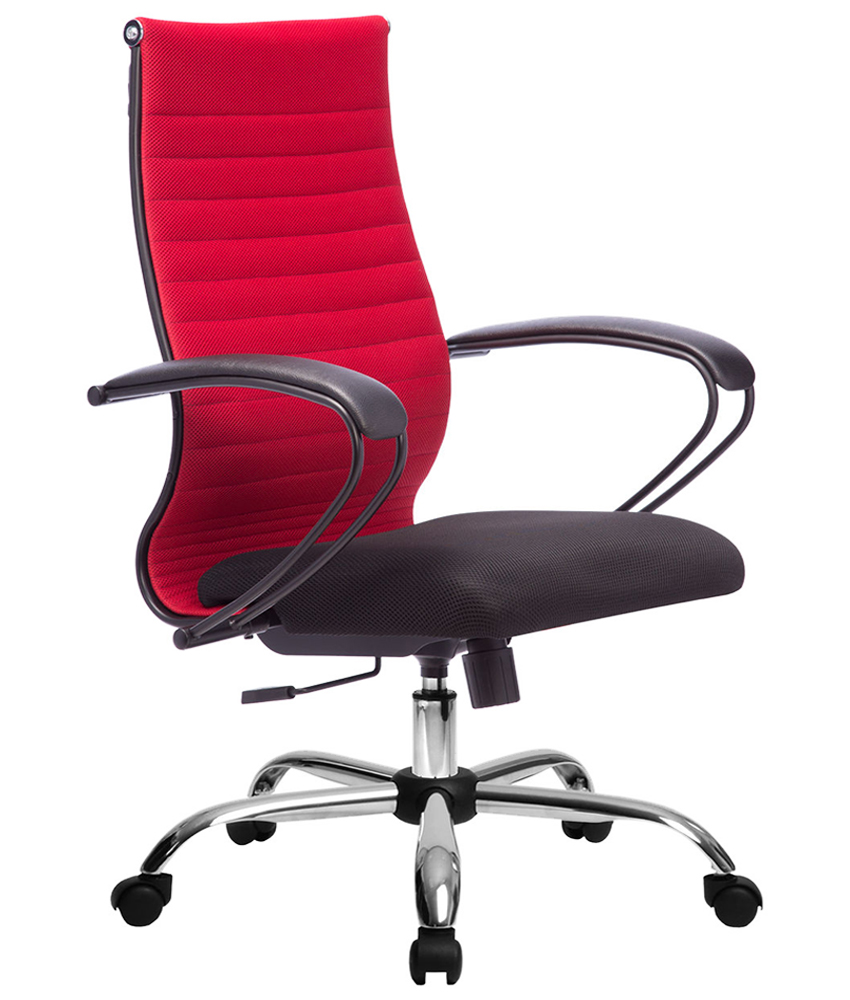 - красная спинка с черными накладками подлокотника и черным сиденьем.