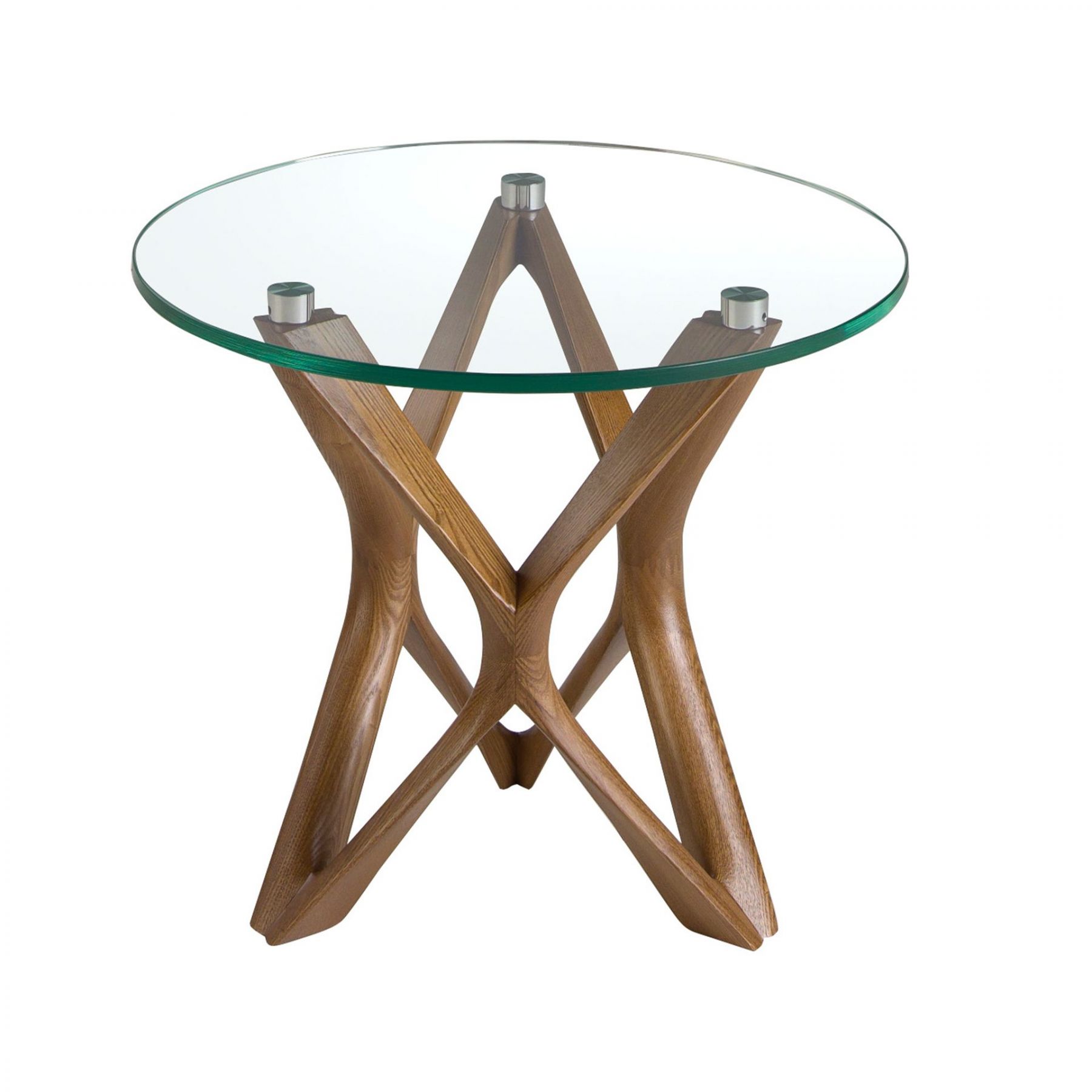 Круглый приставной столик 2127/LT17192 из закаленного стекла и ореха