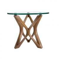 Круглый приставной столик 2127/LT17192 из закаленного стекла и ореха