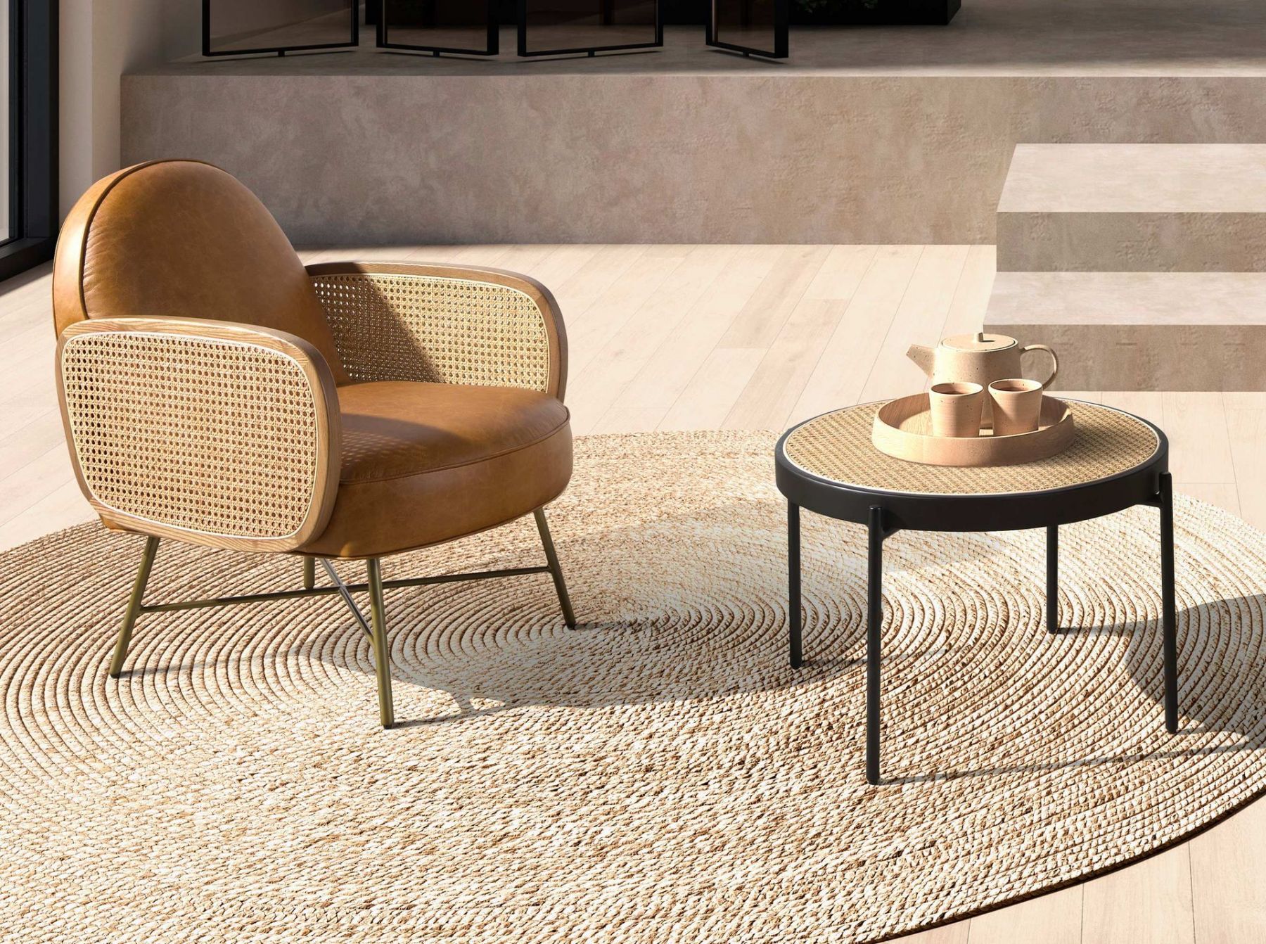 Круглый журнальный столик современного дизайна со столешницей из ротанга и элегантным круглым кольцом из дерева DM, лакированного в черный цвет , что придает ему оригинальный и характерный вид. Черная конструкция ножек из нержавеющей стали толщиной 22 микрона делает его идеальным журнальным столиком, создавая утонченный и оригинальный вид.