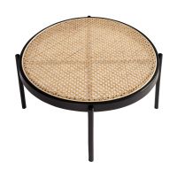 Круглый журнальный столик современного дизайна со столешницей из ротанга и элегантным круглым кольцом из дерева DM, лакированного в черный цвет , что придает ему оригинальный и характерный вид. Черная конструкция ножек из нержавеющей стали толщиной 22 микрона делает его идеальным журнальным столиком, создавая утонченный и оригинальный вид.