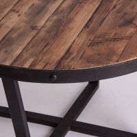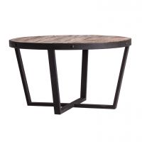 Круглый журнальный столик Minot, натурального состаренного цвета, в индустриальном стиле. Изготовлен из переработанной сосновой древесины.