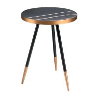 Круглый журнальный столик современного дизайна с керамической столешницей с имитацией черного мрамора и металлическими ножками. Этот оригинальный приставной столик в элегантном и изысканном стиле идеально подходит для привнесения тепла и стиля в вашу гостиную, а также для придания уникального акцента благодаря отделке его краев и ножек из стали под бронзу.