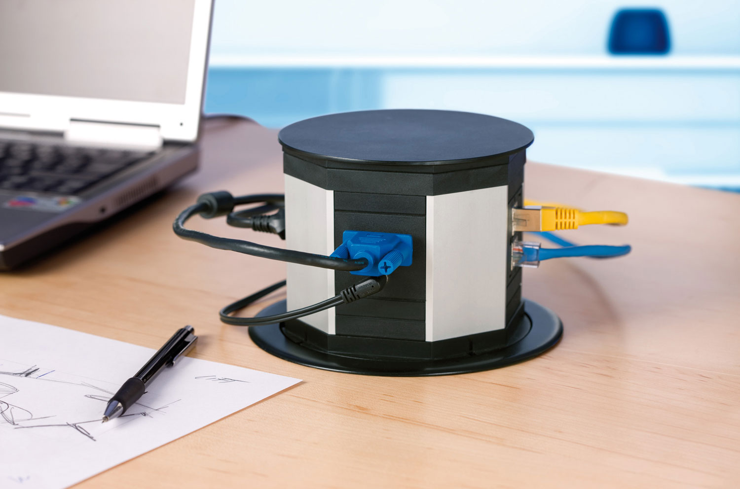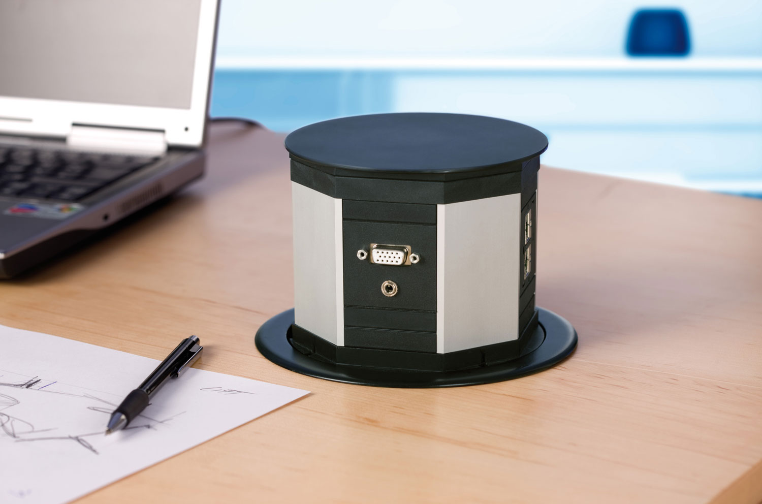 Встраиваемый Розеточный модуль 2+2cat5e+V LIFT СЕРО-ЧЕРНЫЙ