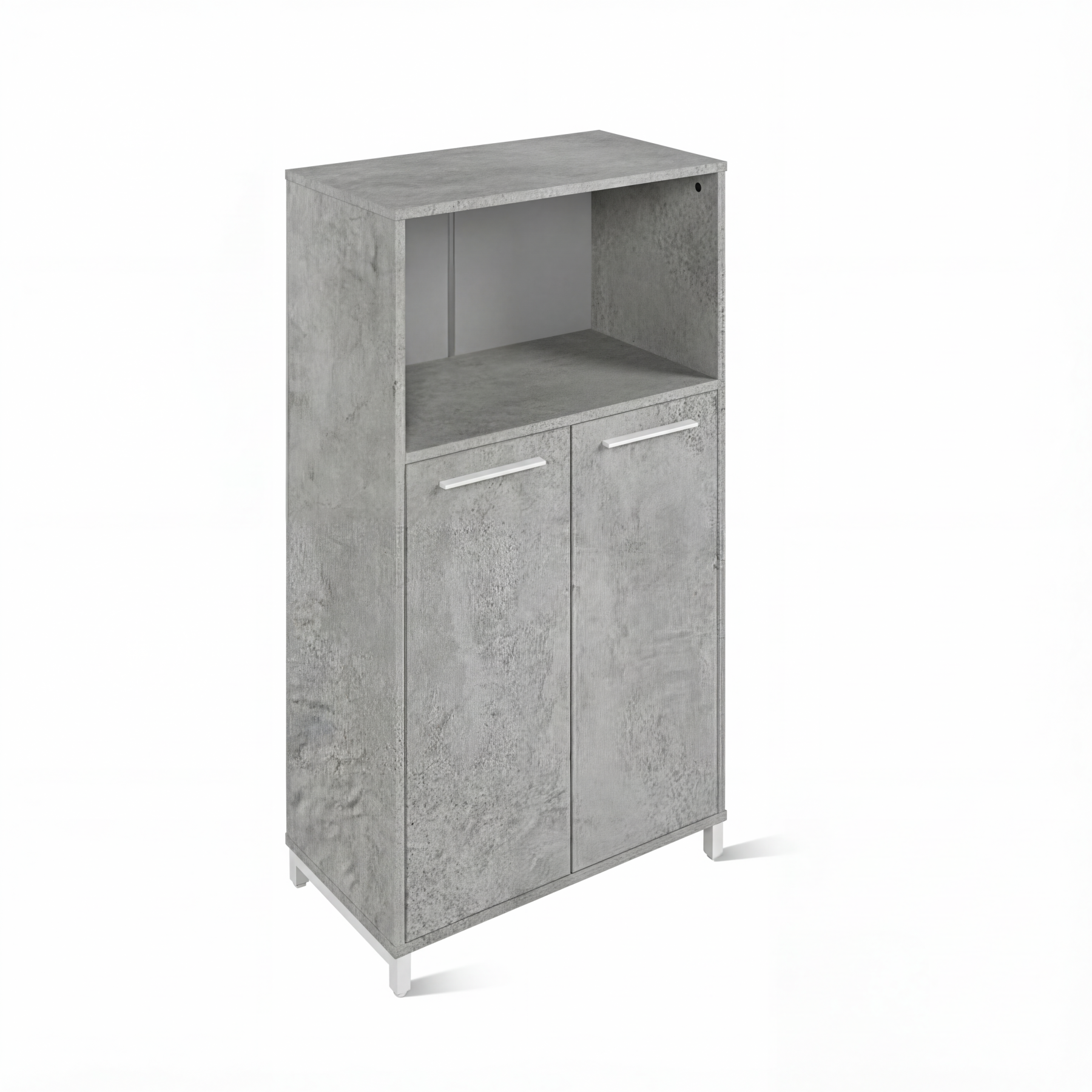 Универсальный представитель серии ЛОФТ. Несколько шкафов легко стягиваются между собой и образуют удобную систему хранения. Для плавного закрывания на фасады шкафа устанавливаются мебельные петли с доводчиком. Стильные ручки и цвет дерева Бетон гармонично вписываются в любой интерьер. Высота шкафа 1 170 мм позволяет смело использовать его в качестве перегородки. Перегородка из нескольких таких шкафов функционально делит пространство на зоны и придает изюминку интерьеру. Сочетание открытых и закрытых отделений позволяет организовывать удобное хранение документов и других предметов. Шкаф устанавливается на металлические регулируемые опоры чёрного цвета.