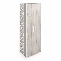 Удачное решение для вашего интерьера. Шкаф оборудован штангой для хранения одежды на плечиках и полкой для головных уборов. Оптимальная глубина шкафа позволяет хранить одежду и аксессуары в большем количестве. Стильные чёрные металлические ручки и цвет дерева Дуб Канадский гармонично вписываются в любой интерьер. Графичность модели определяют ножки из металлических стоек с иксобразными элементами. Крепление боковых стоек универсальное, поэтому вы можете их переворачивать как вам удобно, располагая вертикальные профили спереди или сзади. Несколько шкафов легко стягиваются между собой и образуют удобную систему хранения.