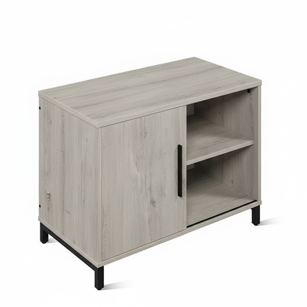 Современный дизайн и практичное решение. Тумба под оргтехнику оборудована слайдерной дверью и полкой. Перемещайте дверь как удобно вправо и влево. Сочетание открытых и закрытых отделений позволяет организовывать удобное хранение пультов и других аксессуаров, офисной бумаги, картриджей для принтеров. Прочный материал крышки выполнен из ЛДСП толщиной 22 мм делает придает тумбе презентабельный вид. Корпус, исполненный в цвете дерева Дуб Канадский, гармонично вписывается в любой интерьер. Благодаря лаконичному дизайну тумба прекрасно сочетается с мебелью из серии ЛОФТ и другими стилями.