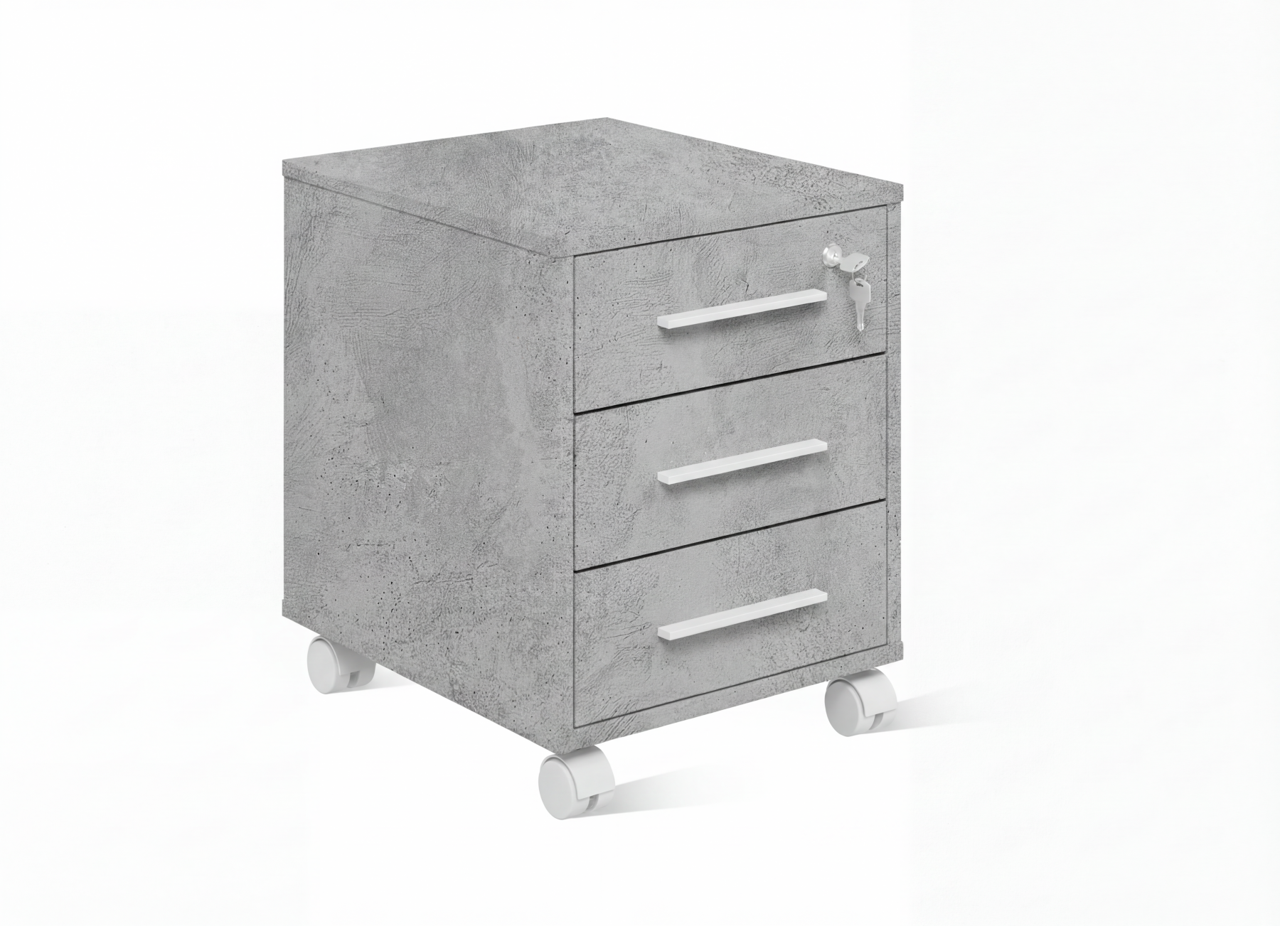 Идеальный способ сделать рабочее пространство более гибким и организованным. Колесные опоры позволяют легко перемещать изделие по комнате и закатывать под стол. Верхний ящик содержит встроенный замок, обеспечивая надежное хранение вещей и документов. В комплекте к замку прилагаются ключ. Чёрные металлические ручки придают тумбе выразительность и создают удобство в использовании. Корпус, исполненный в цвете дерева Бетон, гармонично вписывается в любой интерьер. Модель идеально сочетается с рабочим столом серии ЛОФТ.
