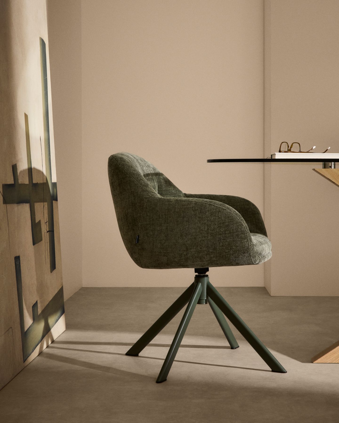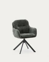 Lexa Вращающееся кресло из зеленого шенилла и стальными зелеными ножками