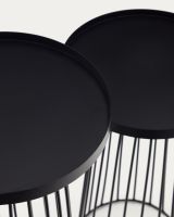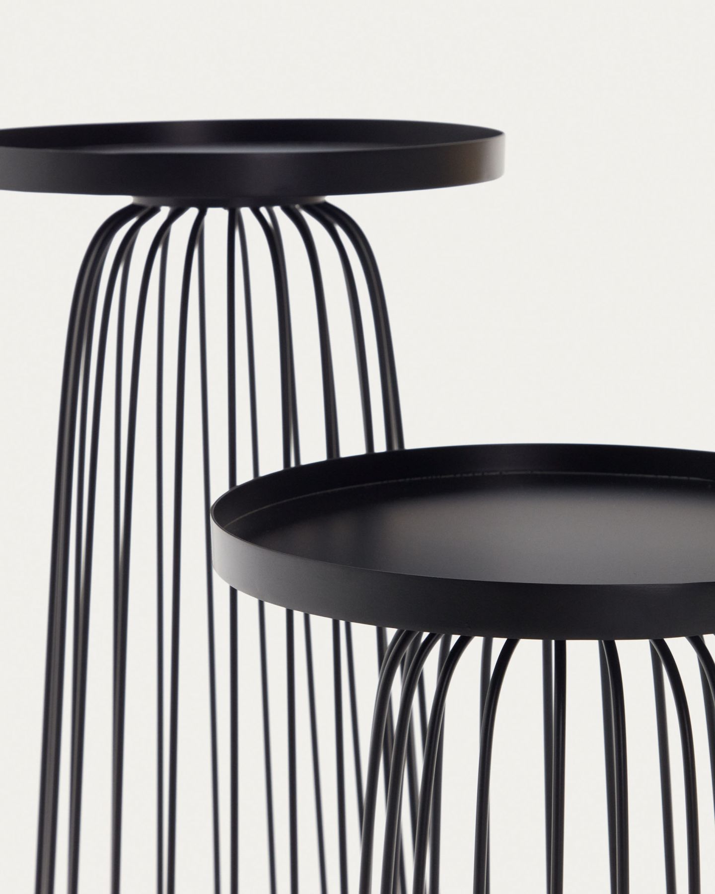 Набор столиков Dilva от фабрики La Forma (ex Julia Grup) – изящный промышленный дизайн для вашей гостиной. Набор столиков Dilva – это та мебель для обстановки, которая нужна больше всего. Неосознанно мы постоянно ее используем. Возле дивана или кресла, пока читаем, пьем кофе, декорируем пространство цветами. Набор Dilva позволяет разместить растения внутри своих стоек, что несомненно добавит зеленый штрих к вашим пространствам. Столики полностью металлические. Они имеют сварную конструкцию, окрашены в черный матовый цвет методом порошкового нанесения. Благодаря этому, покрытие идеально ровное, защищает металл от негативного воздействия влаги и ультрафиолета. Столешницы круглые, с загнутыми бортиками, за счет чего пролитая жидкость не окажется на полу. Стойки конусной формы, с проволочной структурой. Максимальная нагрузка на каждый столик – 5 кг. Размеры: ширина – 36 см, высота – 79 см, глубина – 36 см. Суммарный вес – 10.7 кг Столики предназначены только для домашнего использования. Чистка только деликатным способом, без использования абразивов и отбеливателей. Сборка не требуется.