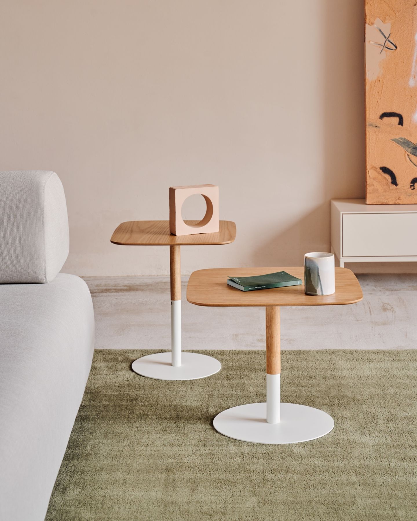 Набор Watse из 2 квадратных столиков из шпона дуба и матового белого металла