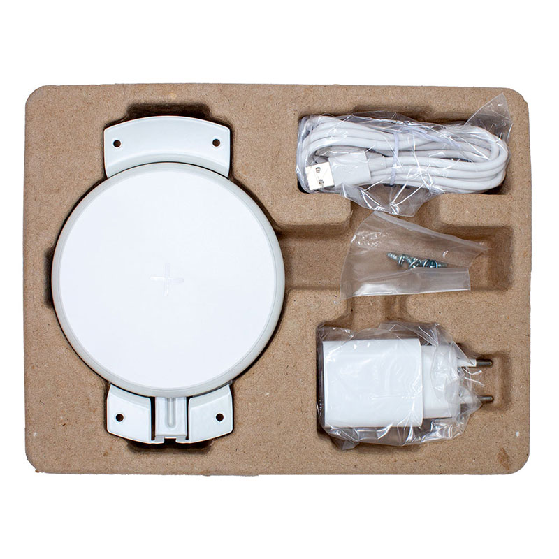 Спецификация Наименование SIMPLE-10 Производитель INRIOR Страна производства Китай Цвет корпуса Белый Мощность 15 W Диаметр 100 мм Беспроводная зарядка сертифицирована в РФ. Гарантия 2 года. Беспроводное зарядное устройство SIMPLE-10 QC3.0, под столешницу и пр. мебель. Накладная, скрытая беспроводная зарядка под стол и мебель, с блоком питания, провод USB 1.5 м, SIMPLE-10, на смартфон, айфон, самсунг, телефон, наушники. Диаметр - 100 мм. Класс пылевлагозащиты IP20. Используется строго с устройствами поддерживающими беспроводную зарядку (имеющими встроенный ресивер QI). Технология обозначается как «индуктивная зарядка (inductive charging)», «Qi-Power» или «поддержка Qi». Зарядное устройство с кабелем (1.5 метра) и USB-разъемом - 1 шт. Вилка (блок питания) для подключения к электросети - 1 шт.