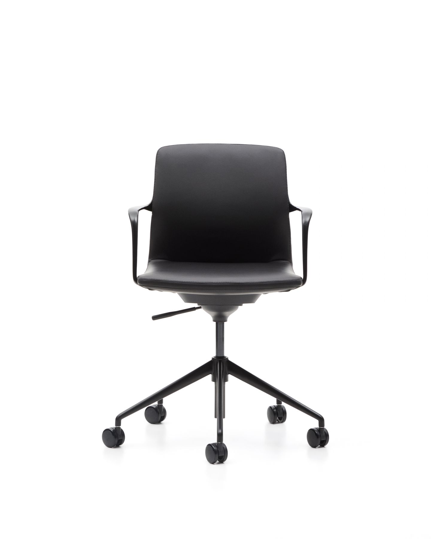 Офисный стул Nerlan из черной экокожи с черной алюминиевой рамой