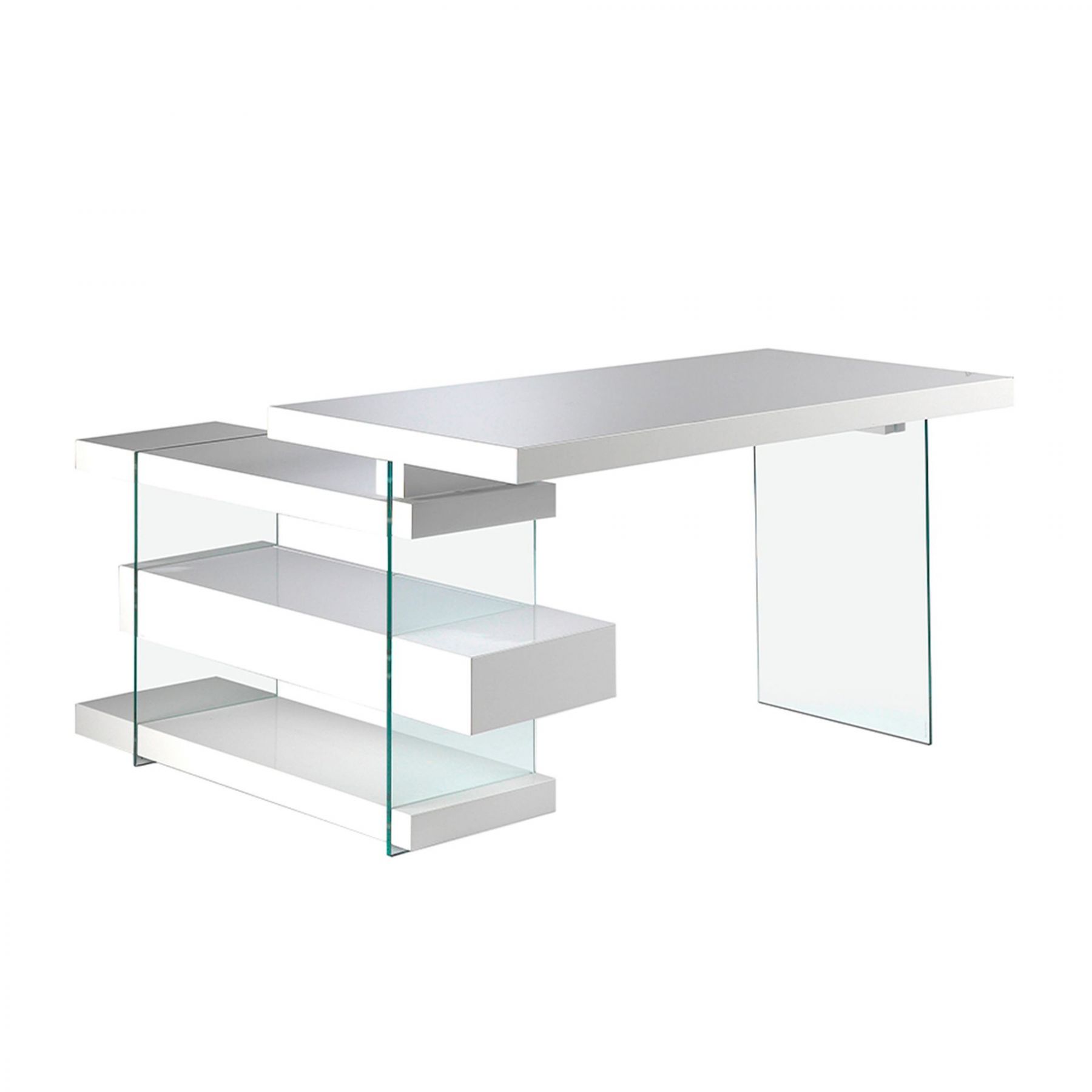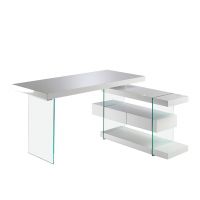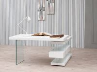 Письменный стол Decora 978OT-BLANCO от Angel Cerda — испанский взгляд на современное обустройство рабочего места. Стол выглядит изумительно. Его угловая конструкция увеличивает площадь рабочей поверхности, облегчает доступ к книгам, документам. Сочетание стекла и полок из МДФ создает удивительное ощущение легкости конструкции. Здесь в каждой детали просматривается дух современности, технологий. Такая модель придется по вкусу всем приверженцам европейского модерна, и, в частности, поклонникам стилей хай-тек, минимализм. Конструкционно стол состоит из четырех панелей прочного МДФ белого глянцевого цвета и двух опор из закаленного стекла. Все комплектующие имеют прямоугольную форму. Столешница с полками расположена перпендикулярно. Полки соединены между собой стеклами, которые буквально пронизывают каждую комплектующую. Всю полочную конструкцию огибает рама из стекла, нижняя грань которой служит основанием для стола. Именно она обеспечивает хорошую устойчивость изделия. Стеклянные опоры прочные, стойкие к ударам твердыми предметами. Поэтому стол выдерживает высокие весовые нагрузки, безопасен при эксплуатации. Размеры изделия: длина — 140 см, глубина — 127 см, высота — 75 см. Потребуется самостоятельная сборка. Инструкция и крепеж входят в комплектацию. Отделка - лак Blanco Similar 9003.