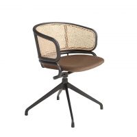 Вращающийся стул с подлокотниками современного дизайна, обитыми коричневой бархатистой тканью, и спинкой из ротанга натурального цвета. Вращающийся стул в авангардном, но вневременном стиле, со структурой и ножками из черной нержавеющей стали, который станет обязательным атрибутом вашей столовой. Ткань - TS-SW.Marron03.