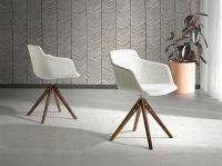 Кресло DC-S084A от фабрики Angel Cerda — изящество и легкость для городской квартиры. Кресло изумляет своим «воздушным» дизайном. В нем все элементы выглядят легко и непринужденно. Такую модель можно представить как на кухне, так и в гостиной. Ведь бежевый цвет универсален, а компактные габариты гарантируют расстановку мебели в любом, даже небольшом помещении. Каркас и ножки этого кресла изготовлены из массива ясеня. Это прочный материал, который обладает сразу несколькими полезными качествами: долговечность, натуральность, легкость. Цельное сиденье — современное конструкционное решение, часто встречаемое в мебели городского типа. Здесь спинка плавно переходит в подлокотники, образуя эргономичную нишу для сидящего в кресле человека. Материал обивки — текстиль светло-серого цвета. Этот материал прочный и износостойкий, но требует деликатного ухода (использовать при чистке отбеливатели и абразивные вещества не рекомендуется). Есть тонкий слой синтетического наполнителя. Стойка вращается на 360 градусов. Она выполнена из металла. К ней прикручено четыре ножки, которые симметрично расходятся в стороны, образуя большую площадь опоры, что гарантирует хорошую устойчивость. В зависимости от модели, цвет ножек может быть бежевого или коричневого цвета. Размеры — 54 см ? 81 см ? 58 см (ширина, высота, глубина). Доставка в разобранном виде (деревянная стойка отдельно).