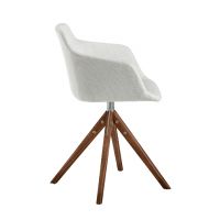 Кресло DC-S084A от фабрики Angel Cerda — изящество и легкость для городской квартиры. Кресло изумляет своим «воздушным» дизайном. В нем все элементы выглядят легко и непринужденно. Такую модель можно представить как на кухне, так и в гостиной. Ведь бежевый цвет универсален, а компактные габариты гарантируют расстановку мебели в любом, даже небольшом помещении. Каркас и ножки этого кресла изготовлены из массива ясеня. Это прочный материал, который обладает сразу несколькими полезными качествами: долговечность, натуральность, легкость. Цельное сиденье — современное конструкционное решение, часто встречаемое в мебели городского типа. Здесь спинка плавно переходит в подлокотники, образуя эргономичную нишу для сидящего в кресле человека. Материал обивки — текстиль светло-серого цвета. Этот материал прочный и износостойкий, но требует деликатного ухода (использовать при чистке отбеливатели и абразивные вещества не рекомендуется). Есть тонкий слой синтетического наполнителя. Стойка вращается на 360 градусов. Она выполнена из металла. К ней прикручено четыре ножки, которые симметрично расходятся в стороны, образуя большую площадь опоры, что гарантирует хорошую устойчивость. В зависимости от модели, цвет ножек может быть бежевого или коричневого цвета. Размеры — 54 см ? 81 см ? 58 см (ширина, высота, глубина). Доставка в разобранном виде (деревянная стойка отдельно).