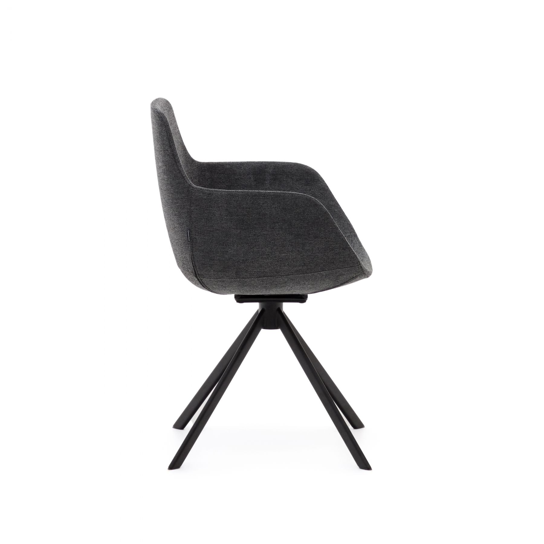 Поворотное рабочее кресло Tissiana из темно-серой синели и черного матового алюминия
