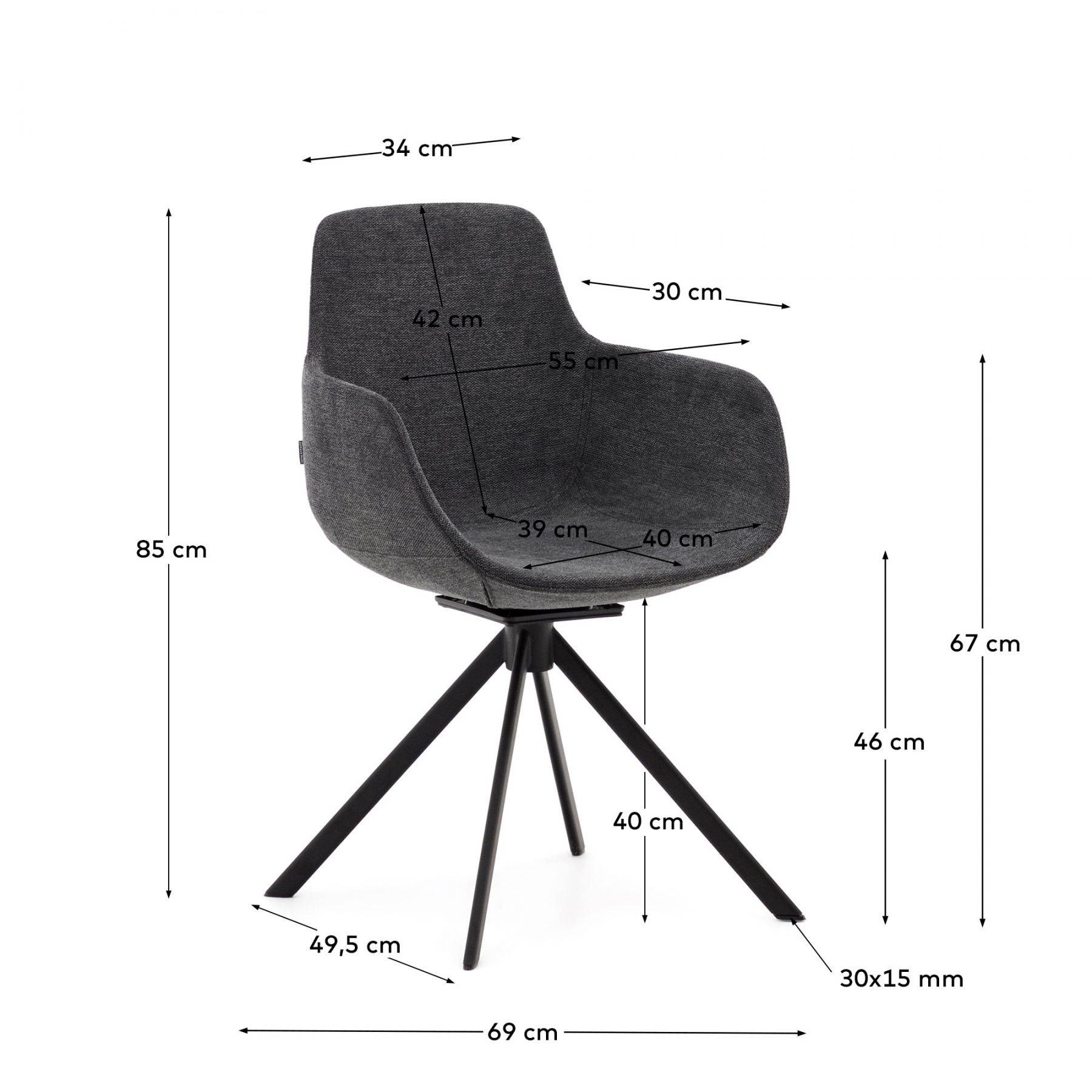 Поворотное рабочее кресло Tissiana из темно-серой синели и черного матового алюминия