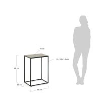 Приставной стол Rewena от фабрики La Forma – керамическая столешница на стальном основании в духе минимализма. Приставной стол Rewena не оставляет сомнений в том, что является ярким представителем минимализма. Простая конструкция и практичность, прочность и современные материалы – все это видно невооруженным взглядом. Когда нужно добавить немного удобства в интерьер, но без «перегруза», то Rewena будет кстати. Стол прямоугольной формы. Столешница сделана из закаленного стекла и керамики (двухслойная). Она имеет толщину 7 мм, ударопрочная, легко очищается от загрязнений. Каркас металлический, покрыт черной порошковой краской. Он имеет сварную рамочную структуру, с шириной ножек 1,3 см. Для защиты напольного покрытия, на углах основания предусмотрены пластиковые накладки. Максимальная нагрузка на столик не должна превышать 30 кг. Размеры: ширина – 45 см, глубина – 30 см, высота – 60 см. Вес – 5,9 кг. Потребуется сборка.