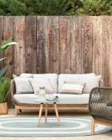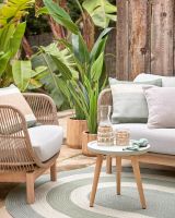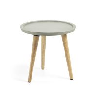 Приставной стол livy каучуковый от фабрики La Forma – простая и практичная модель для использования дома и на открытом воздухе. Приставной стол livy не удивит своим эксклюзивным дизайном. Но он действительно впечатляет количеством полезных свойств. Столик можно использовать на улице (под навесом), ставить куда угодно благодаря круглой форме, быстро чистить от загрязнений и не бояться, что он разобьется от удара. Да, модель безусловно удачная для загородных домов и для практичных людей. Стол состоит из круглой бетонной столешницы с бортиками высотой 4 см и трех ножек из каучукового дерева. Ножки конусной формы. Вверху они имеют ширину 6 см, внизу – 3 см. Есть лаковое покрытие для защиты от негативного воздействия влаги, сохранения целостности дерева при эксплуатации. На каждой ножке предусмотрены пластинчатые наконечники, улучшающие устойчивость на неровной поверхности. Максимальная нагрузка на столик не должна превышать 20 кг. Размеры: ширина – 50 см, высота – 45 см. Вес – 5,3 кг. Потребуется минимальная сборка.