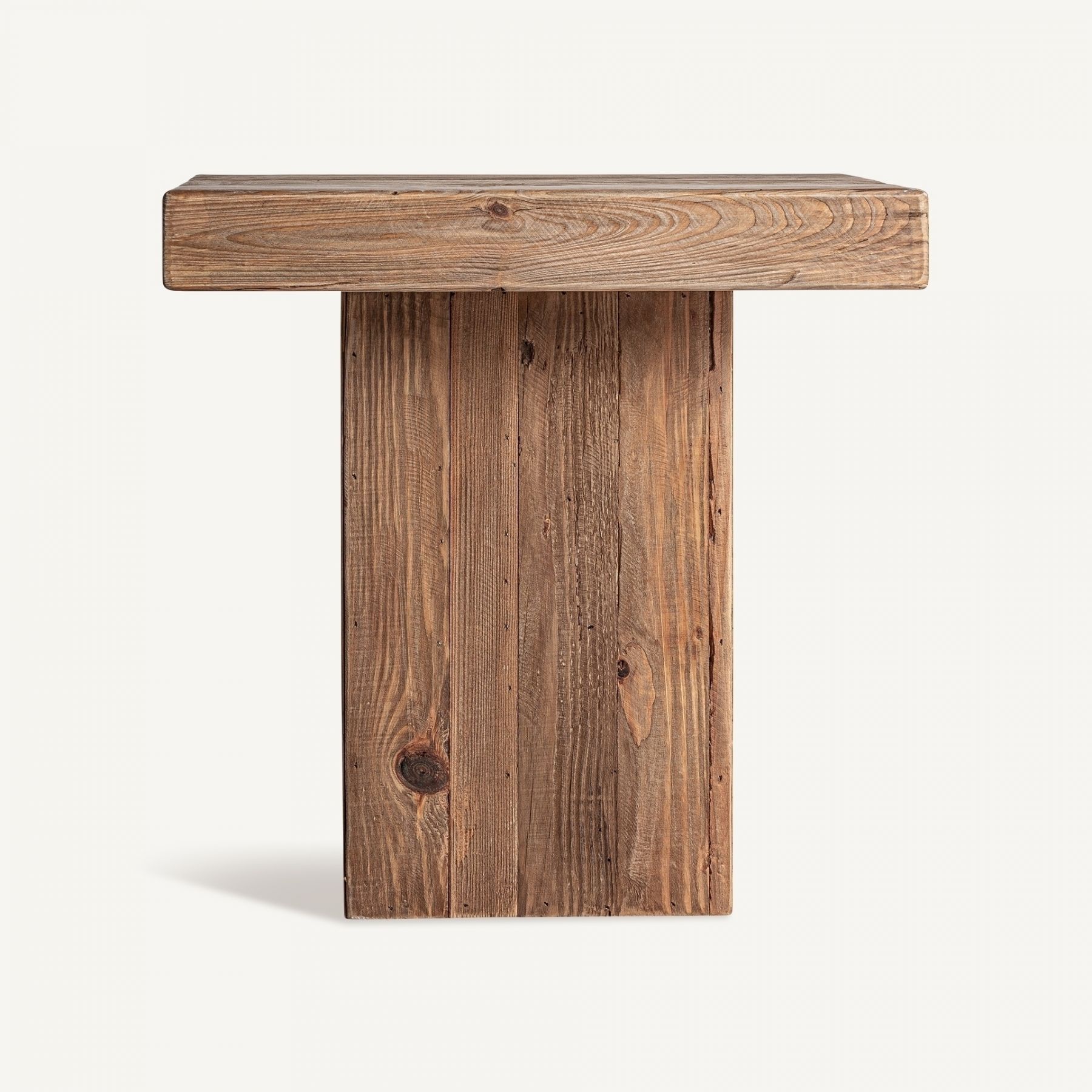 Чистая аутентичность. Приставной столик BREIVE воплощает суть деревенского дизайна с современным оттенком. Изготовленный из переработанной сосны с состаренной коричневой отделкой, каждый предмет рассказывает уникальную историю благодаря своей естественной текстуре и подлинным несовершенствам. Его компактный и прочный вид делает его универсальным аксессуаром, идеальным для добавления тепла и характера в любой уголок дома.