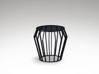 Стол-подставка из металла, черная матовая отделка. Верхняя часть из дымчатого стекла толщиной 8 мм.