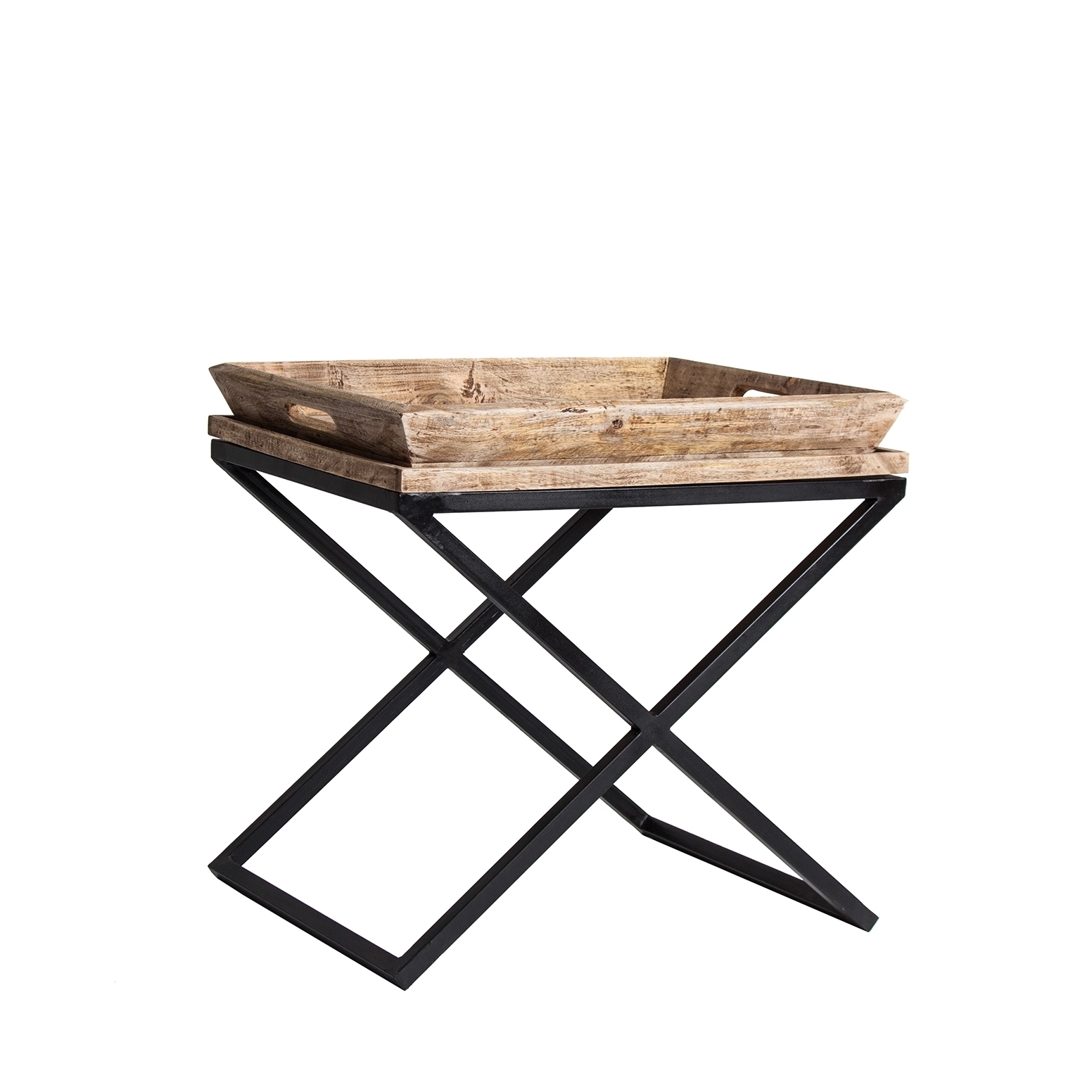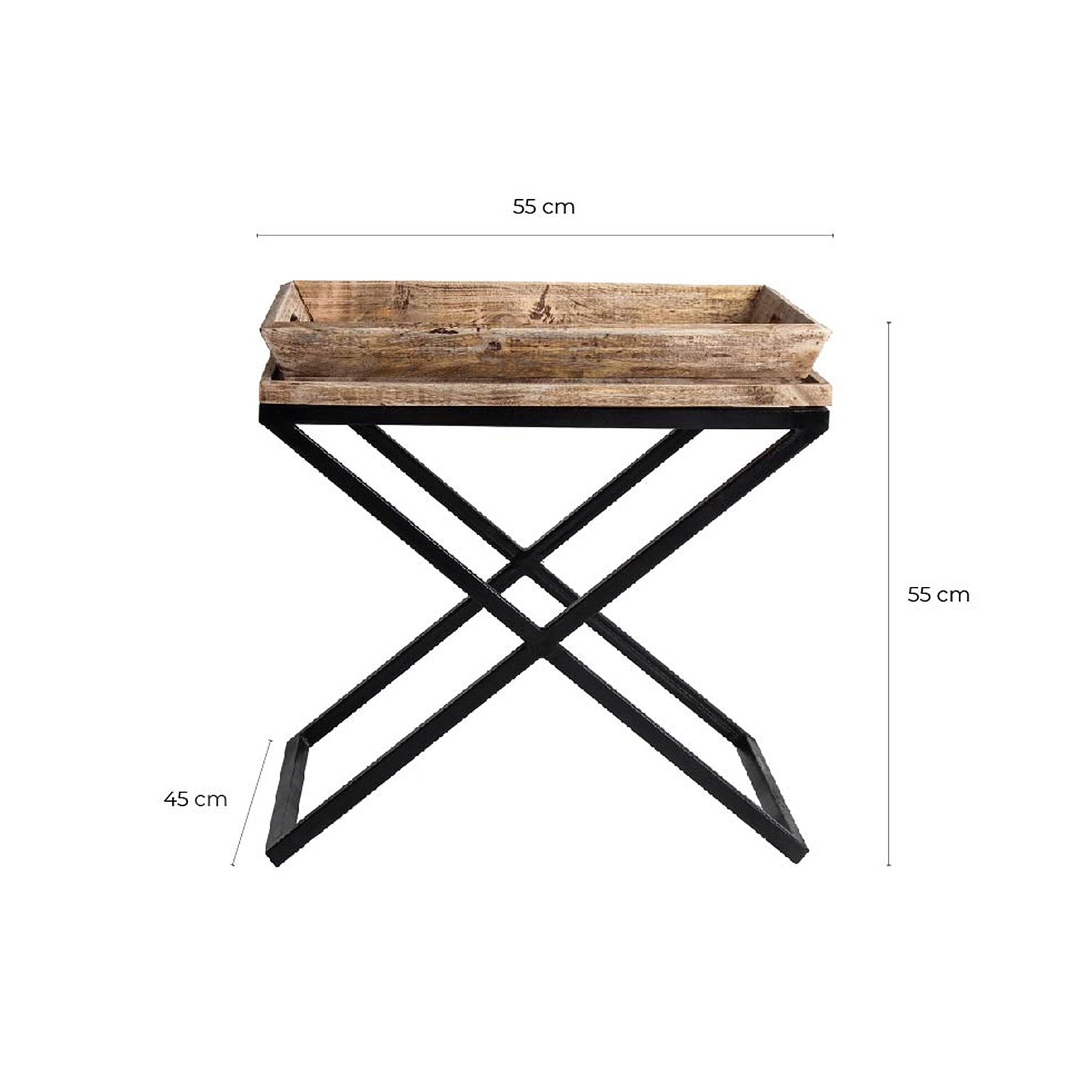Приставной столик Newak от VICAL home сочетает в себе дизайн и функциональность. Этот стол для гостиной с подносом размером 55x45x53 см, выполненный из дерева манго и украшенный железными деталями, является универсальным и стильным. Черная/натуральная отделка и дизайн поддона делают его идеальным для современной обстановки с деревенскими нотками.
