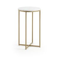 Приставной столик Sheffield ? 43 от фабрики La Forma – мраморная столешница на тонкой изящной опоре. Приставной столик Sheffield – это максимально облегченная конструкция и роскошь мрамора. Столик не только займет минимум места, но визуально не утяжелит пространство. Его легкость – это заслуга тонких рамочных опор. А красота видна невооруженным взглядом – это мрамор, который всегда безупречен. Столик состоит из металлической стойки и круглой столешницы. Столешница выполнена из мрамора. Вместе с опорой ее высота составляет 3,2 см. Стойка окрашена в цвет латуни. Покрытие не портится при контакте с влагой, легко очищается от загрязнений. На каждой ножке предусмотрены специальные накладки, которые защищают напольное покрытие от повреждений. Максимальная нагрузка на столик – 25 кг. Размеры: диаметр – 43 см, высота – 71 см. Вес – 9 кг. Потребуется небольшая самостоятельная сборка. В коллекции мебели La Forma есть журнальный стол с аналогичным дизайном.